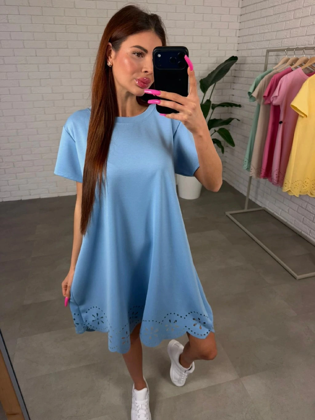 Spodní část doplňuje krásný krajkový volánek, který dodává šatům jemný romantický nádech. Kratší širší rukáv se pohodlně přizpůsobí každému obvodu ruky a je ideální pro teplejší dny.