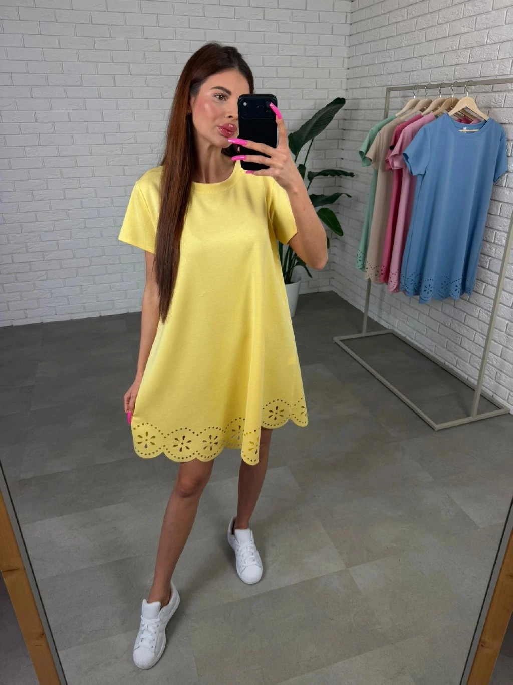 Spodní část doplňuje krásný krajkový volánek, který dodává šatům jemný romantický nádech. Kratší širší rukáv se pohodlně přizpůsobí každému obvodu ruky a je ideální pro teplejší dny.