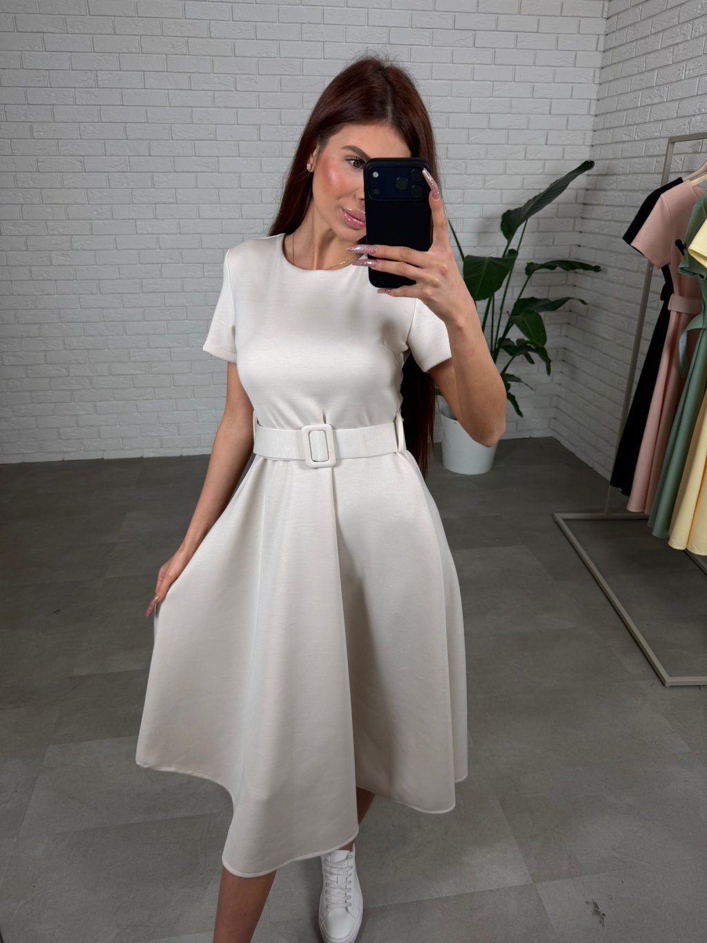 Šaty RAMONA jsou ušité z kvalitního elastického materiálu, který se nemačká, je příjemný na dotek, krásně se přizpůsobí postavě a po celý den si drží upravený vzhled. Minimalistický vršek s krátkým rukávem působí nadčasově a žensky, zatímco bohatá áčková sukně při pohybu jemně splývá a lichotí siluetě i tím, že zakryje drobné nedokonalosti v oblasti bříška, boků či zadečku. Součástí je širší pásek, který zvýrazní pas. RAMONA se hodí na běžné dny, do práce i na schůzky, snadno je sladíš s teniskami i elegantnější obuví. Velikostně sedí na konfekční velikosti XS až L a jsou vhodné přibližně do 180 cm.