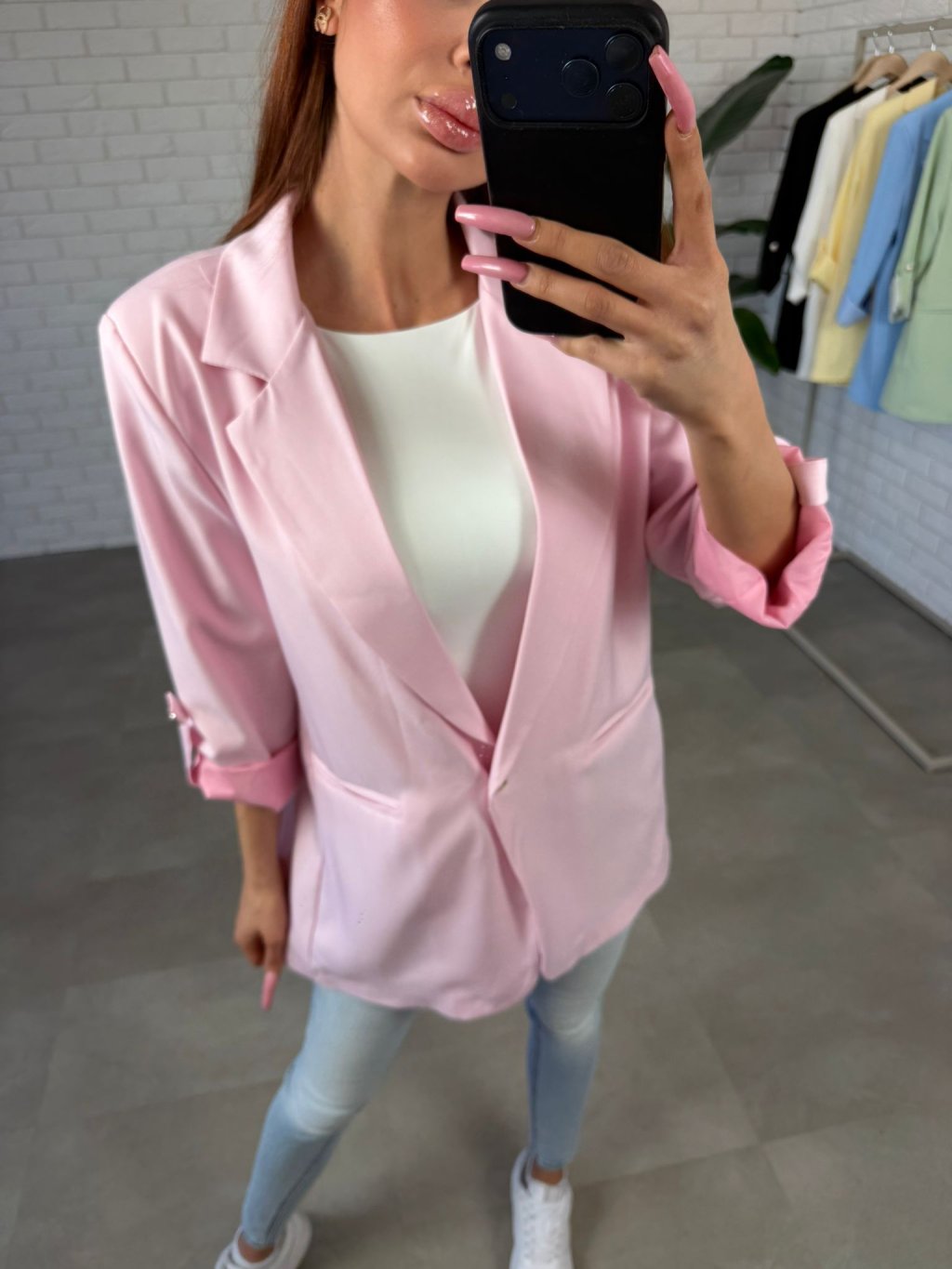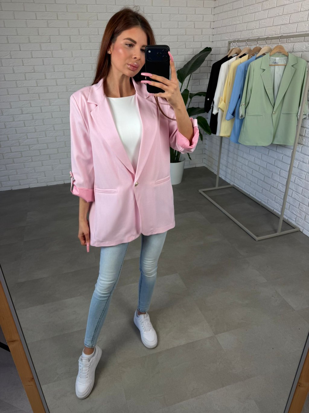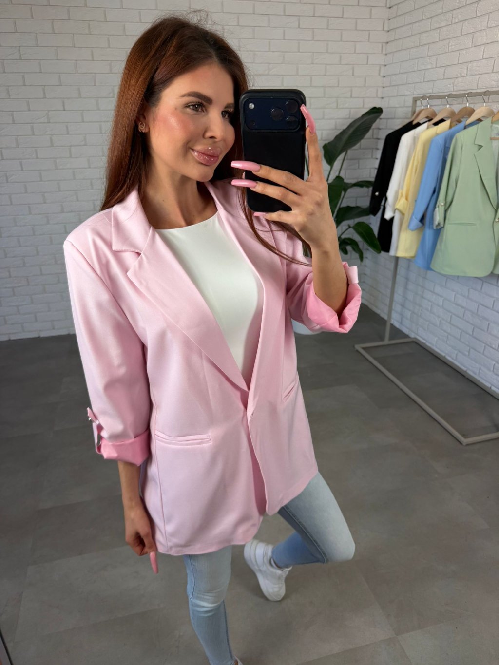 Sako EMAR je jednoduchý, ale velmi elegantní kousek, který dodá každému outfitu upravený a stylový vzhled. Díky podšívce krásně drží tvar a působí kvalitně i při celodenním nošení. Střih je volnější a ležérní, takže se pohodlně nosí a snadno kombinuje s různými kousky v šatníku. Ramenní výztuhy dodávají saku pěknou linii a zvýrazňují siluetu. Dlouhé rukávy lze ohrnout dle potřeby, což dodává modelu uvolněnější charakter. Zapínání je řešeno jedním knoflíkem a přední část doplňují jemné falešné kapsy, které podtrhují elegantní vzhled. Sako EMAR velikostně sedne na konfekční velikosti od S po XL a je nadčasovým kouskem, který využiješ do práce, na setkání i na běžné dny, kdy chceš působit upraveně bez námahy.
