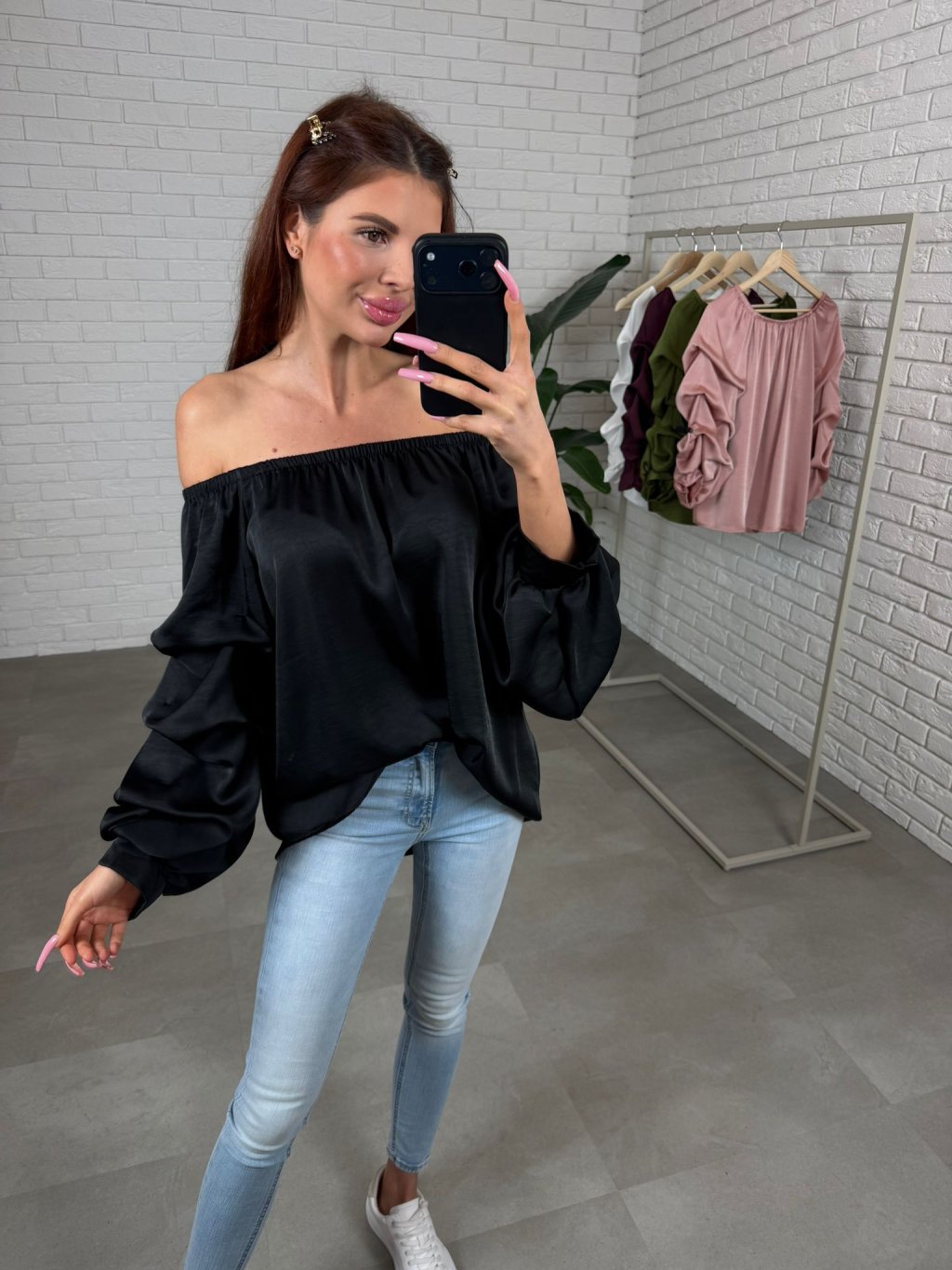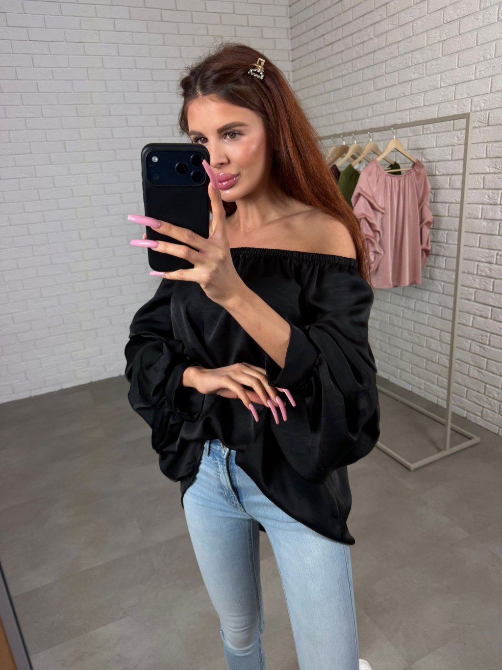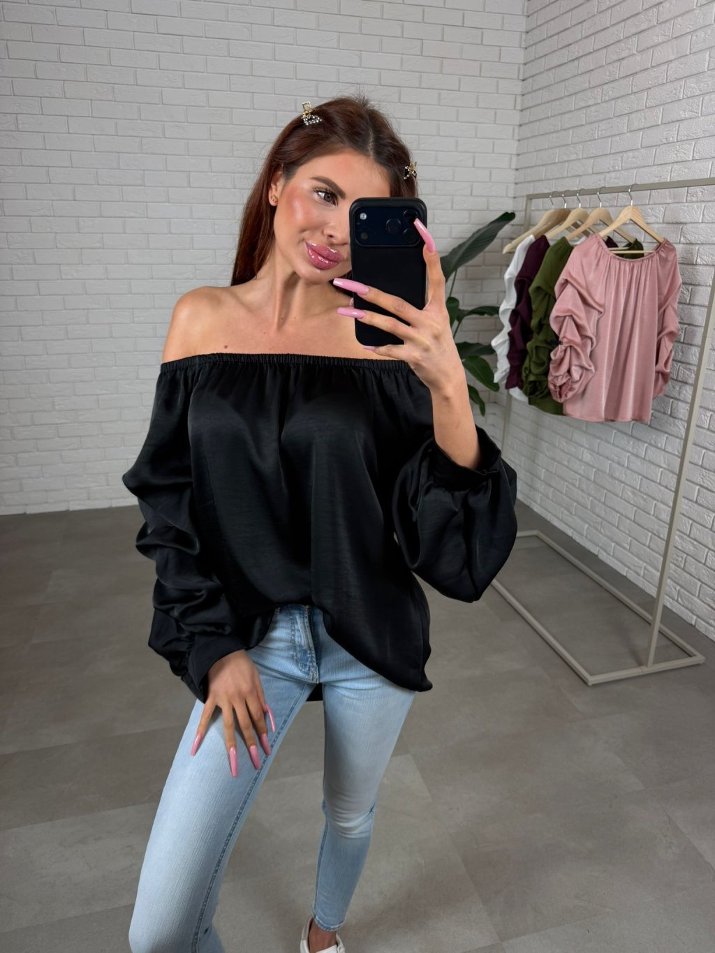 Halenka má volný ležérní střih s romantickým volánkem a díky gumičce v horní části ji můžeš nosit klasicky přes ramena nebo spuštěnou pro výraznější ženský efekt. Rukávy jsou zakončeny patentem, takže pěkně drží, nevyhrnují se a působí upraveně. Délka pod hýždě je praktická i při užších kalhotách a podle nálady ji umíš nosit volně spuštěnou nebo zapravenější do pasu pro zvýrazněnou siluetu.