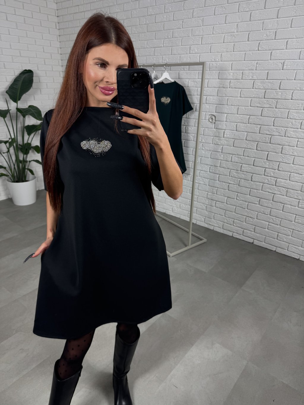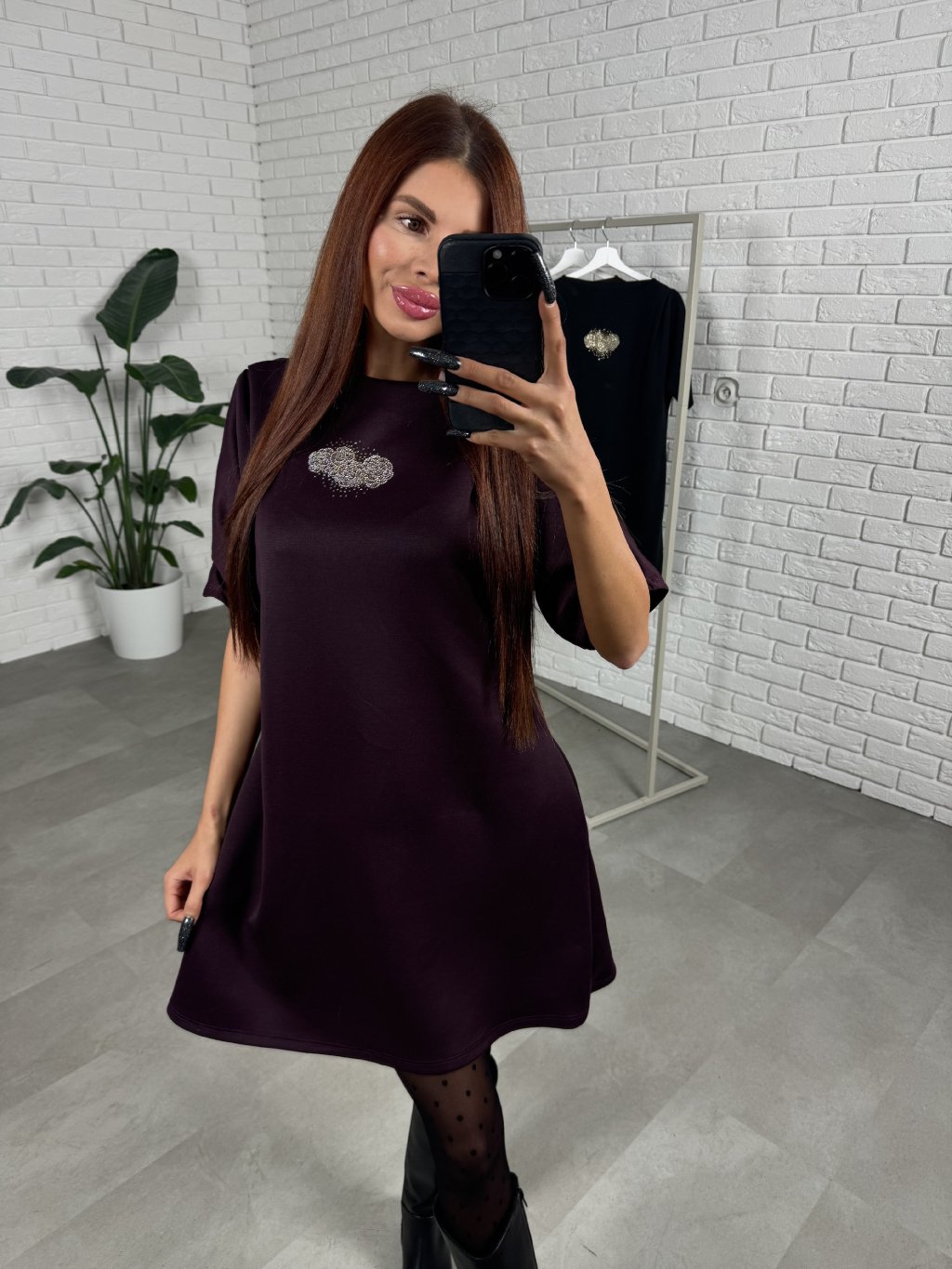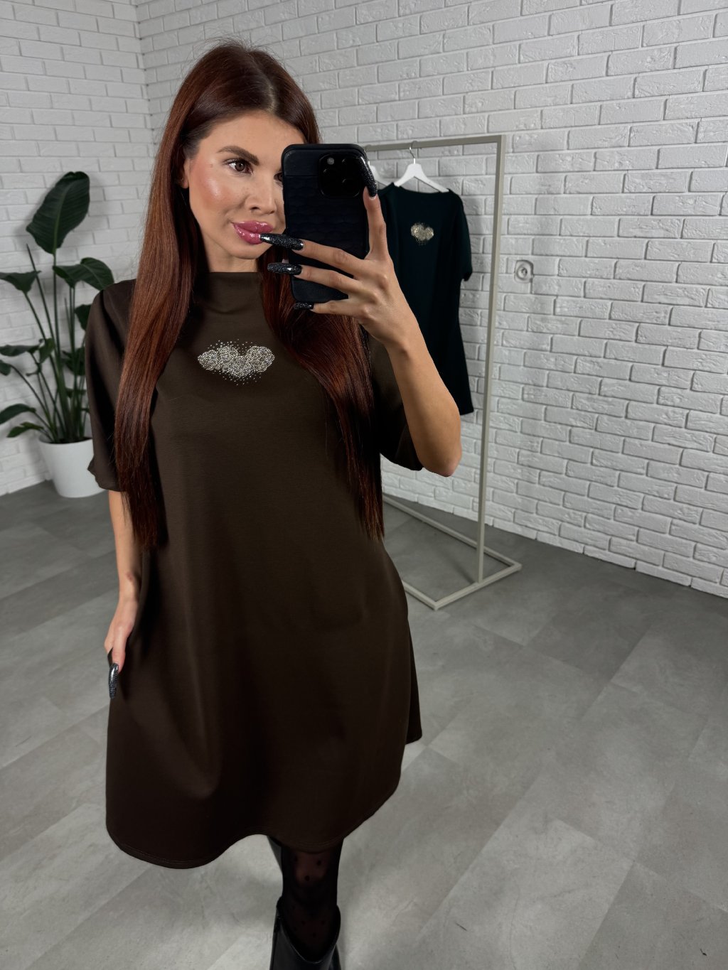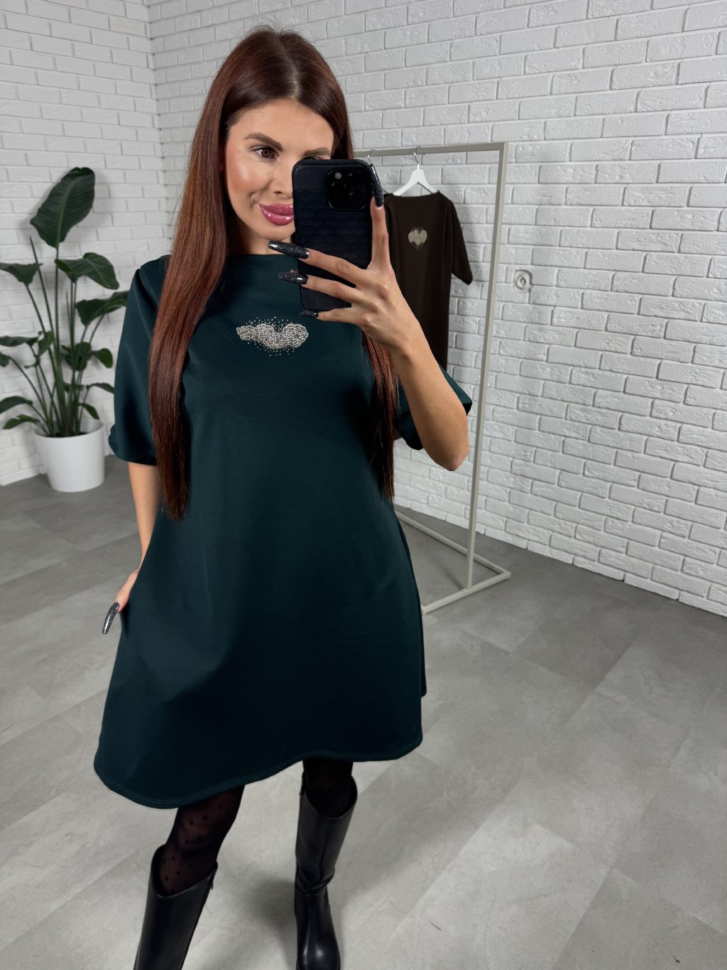 Volný ležérní střih, délka do půlky stehen. Volnější rukáv, který je tříčtvrteční. Šaty ideální pro zakrytí nechtěných nedostatků. Po boku kapsy. Krásná aplikace na šatech.
