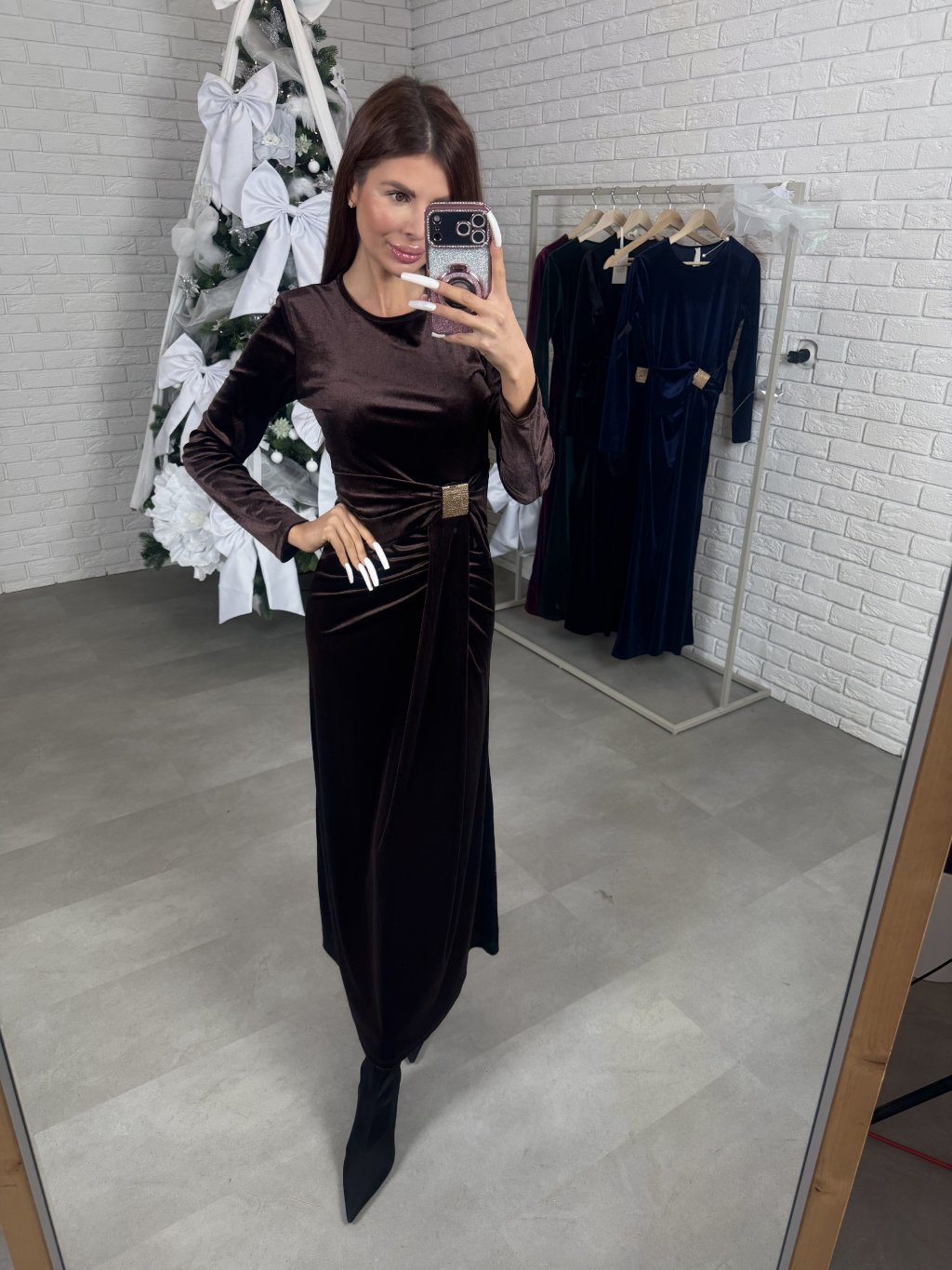 Šaty ANDREO jsou vyrobeny ze sametového materiálu. Vhodné pro postavy vyšší postavy do 180cm. (Modelka má 170cm.) Na pase mají ozdobnou zlatou sponu a řasení, které zamaskují nedokonalosti v oblasti bříška. Jsou mírného A-čkového střihu. Sednou od velikosti XS po L. Vhodné pro každou společenskou událost.
