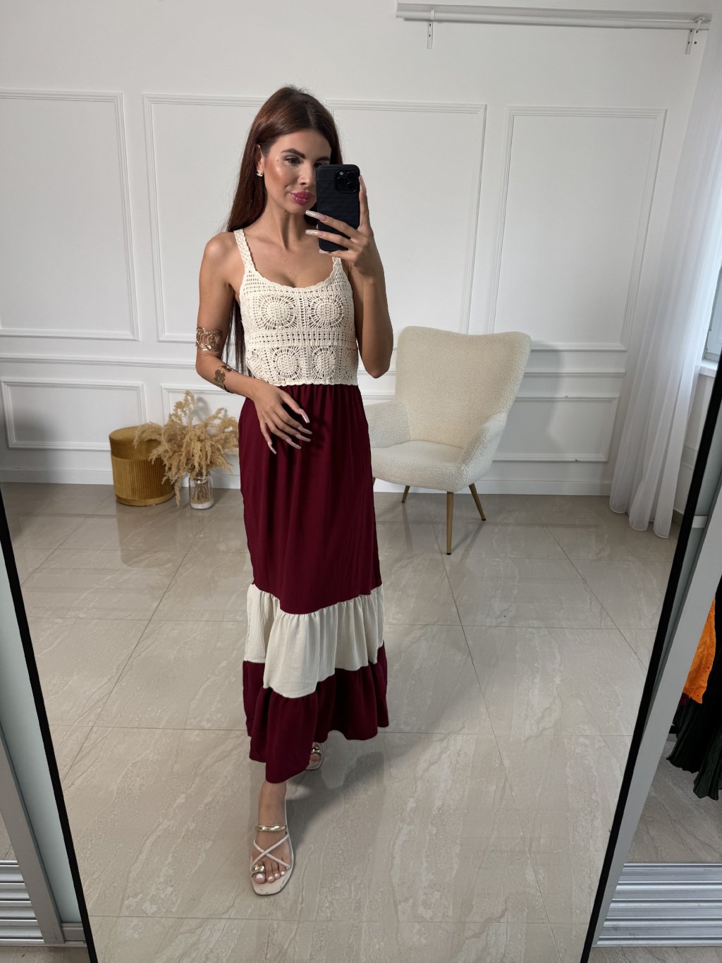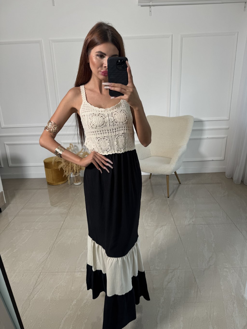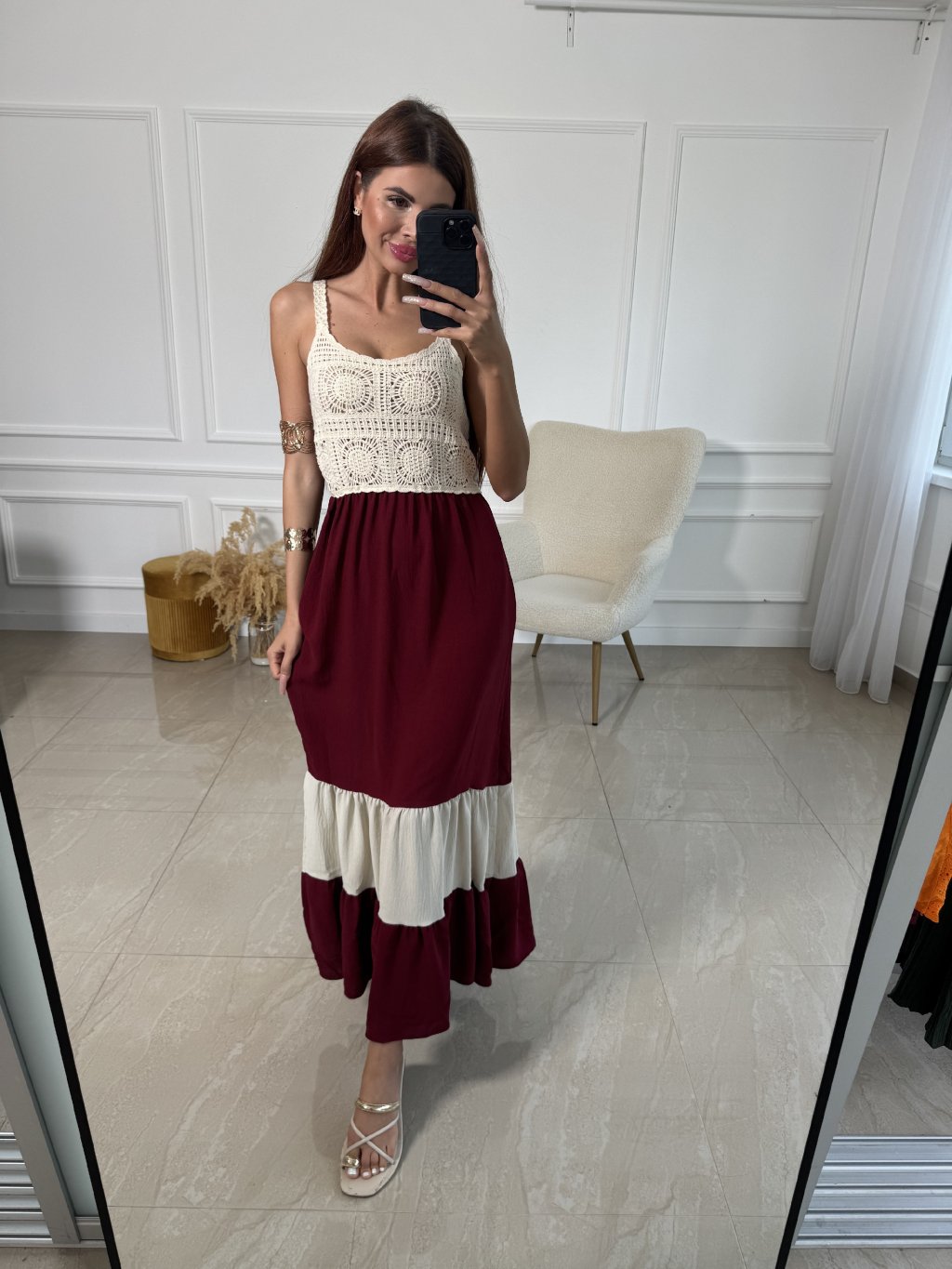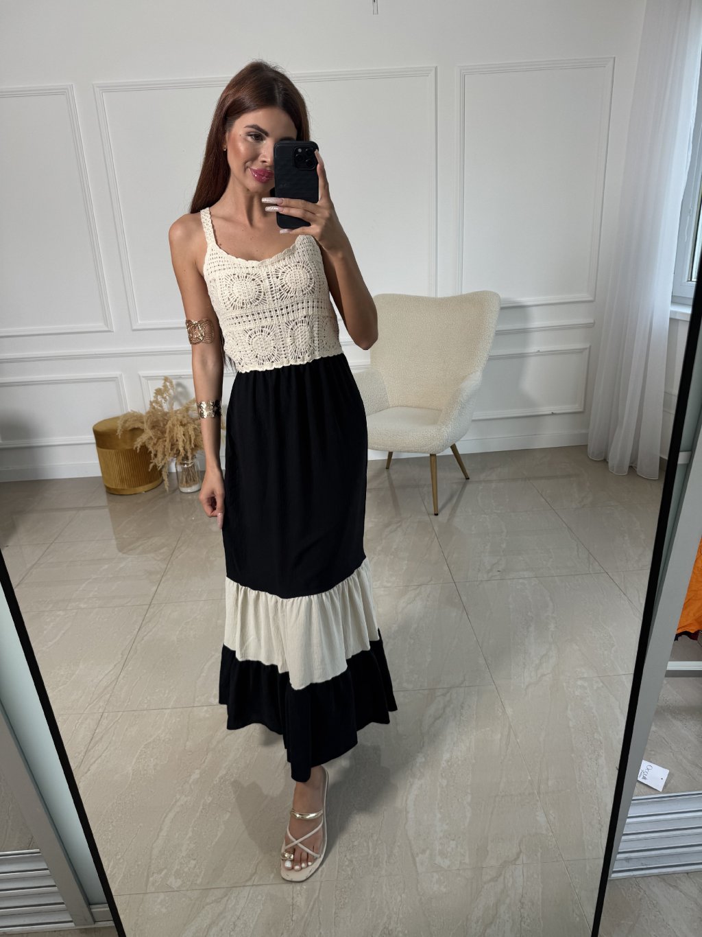 Šaty ARIEL sestávají z měkoučkého háčkovaného topu, který díky své elasticitě sedne na menší i větší prsa. V pase mají elastickou gumku, proto sednou i na těhotenské bříško. Vhodné jsou na velikosti od XS až L. Šaty mají na spodku sukně volánek. Délka šatů sahá po kotníky, proto sednou na nižší i vyšší baby.