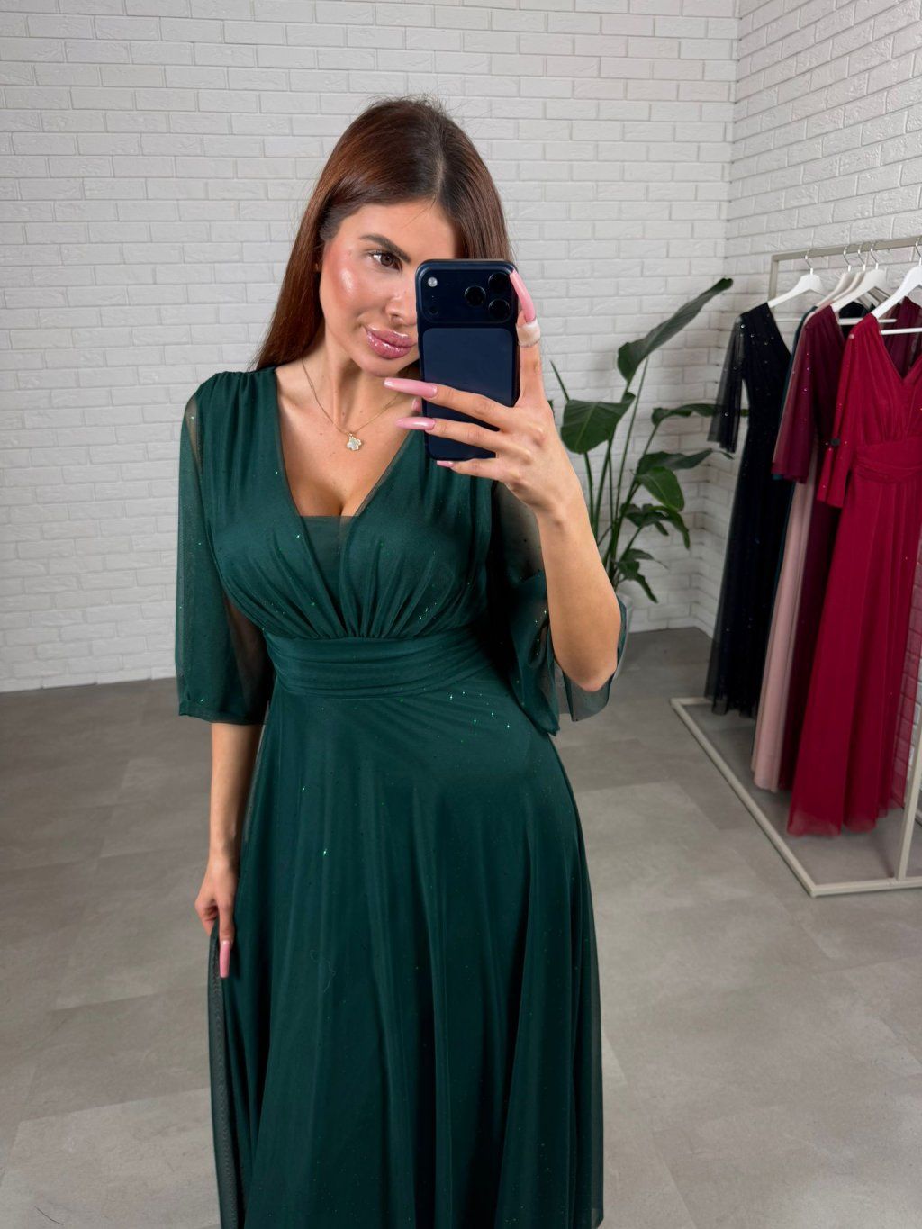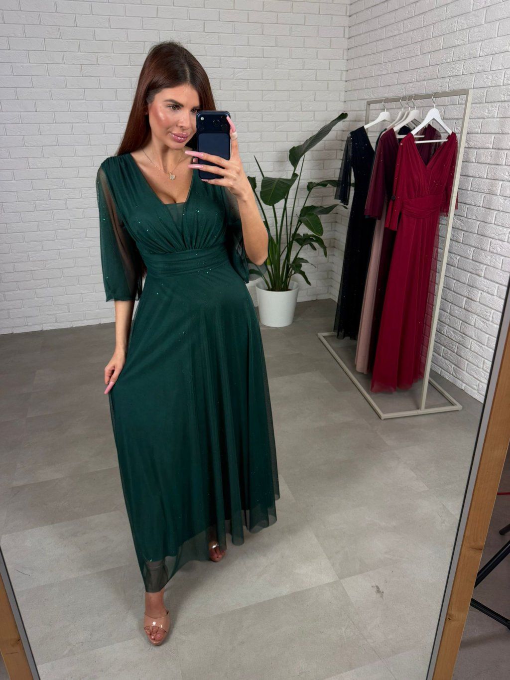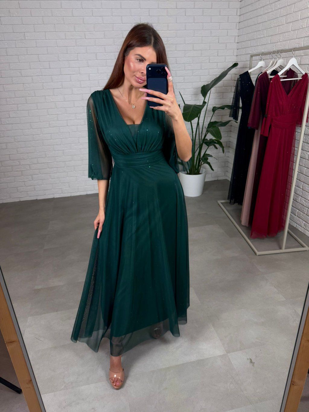 Šaty AUGUSTIN jsou ušité z splývavého, třpytivého materiálu. Jsou velmi bohaté na materiál. Mají volný áčkový střih, který sedne na každý typ postavy i na těhotenské bříško. Díky tomuto střihu šaty skvěle sedí ve velikostech od S po XL. Rukávy jsou zakončené uprostřed pod loktem, aby pohodlně seděly a nikde netlačily. Výstřih je nastavitelný, takže si ho můžete přizpůsobit podle potřeby – sedí jak na menší, tak i na větší prsa. Šaty mají vzadu zavazování, které umožňuje ještě lepší přizpůsobení postavě. Jsou ideální volbou pro dívky, které hledají pohodlí i eleganci v jednom.