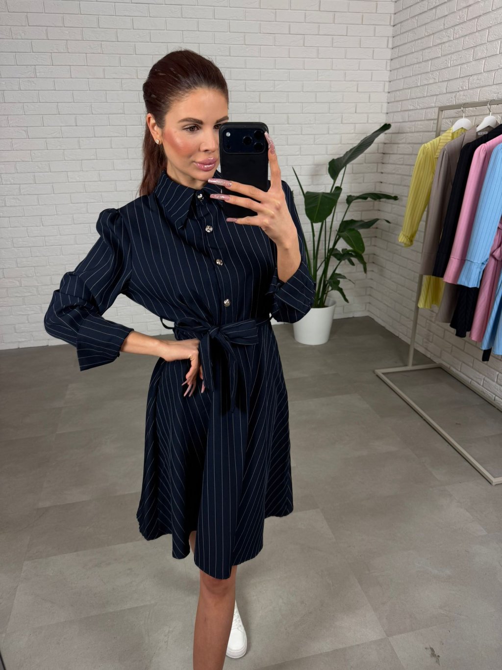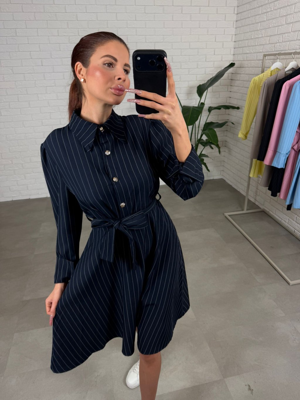 Šaty BIBIEN jsou ušity v nadčasovém košilovém střihu, který působí elegantně a upraveně, ale zároveň je neskutečně pohodlný na běžné nošení. Nemačkavý materiál si drží svůj tvar, takže i po celém dni vypadáš stále „ready“ bez zbytečného žehlení. Áčková sukně je krásně nadýchaná a bohatá na materiál, díky čemuž se do šatů vejde každé bříško, boky i stehna a silueta působí lehce a žensky. Opasek si uvážeš přesně podle sebe, takže šaty sedí i na štíhlé postavy – pas pěkně zvýrazní a vytvoří čistou linii. Délka jemně nad kolena je praktická i ženská a šaty jsou výškově ideální pro kočky až do 180 cm. Čtyři ozdobné knoflíky dodají outfitu italský nádech elegance a udělají z nich výrazný kousek i bez velkých doplňků. Skvěle je vynosíš s teniskami, sandálky i lodičkami – podle toho, zda jedeš do města, do práce nebo na událost. Velikostně sedí od XS po L.
