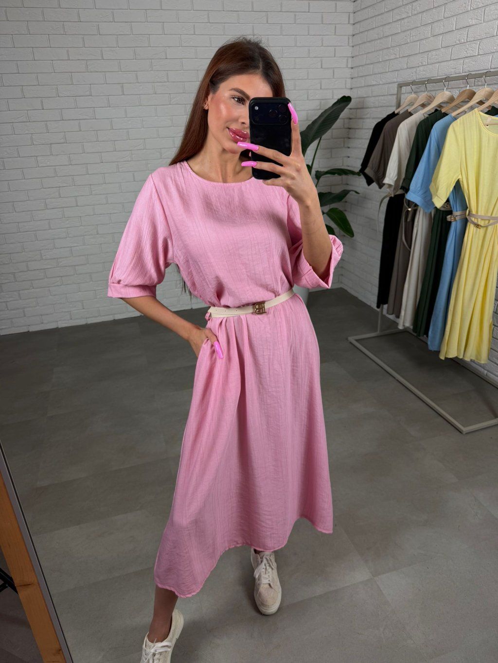 Šaty BIORA jsou ležérní a pohodlný kousek, který si oblíbíš zejména během teplejších dní. Vzdušný materiál je příjemný na nošení a umožňuje pokožce dýchat, takže se v nich cítíš komfortně po celý den. Střih je volný v oblasti bříška, boků i zadečku, nikde neobepíná a přirozeně splývá na postavě. Díky tomu jsou šaty vhodné pro všechny typy postavy, včetně těhotenského bříška nebo období po porodu, kdy oceníš více pohodlí. Opasek je součástí šatů, takže si umíš jednoduše zvýraznit pas nebo je nechat volněji pro uvolněný look. Tříčtvrteční rukáv je vzdušný a stylový, pohodlně se přizpůsobí každé ručičce. Nechybí ani praktické kapsy, které oceníš při běžném nošení. Šaty BIORA velikostně sednou od M po XL.