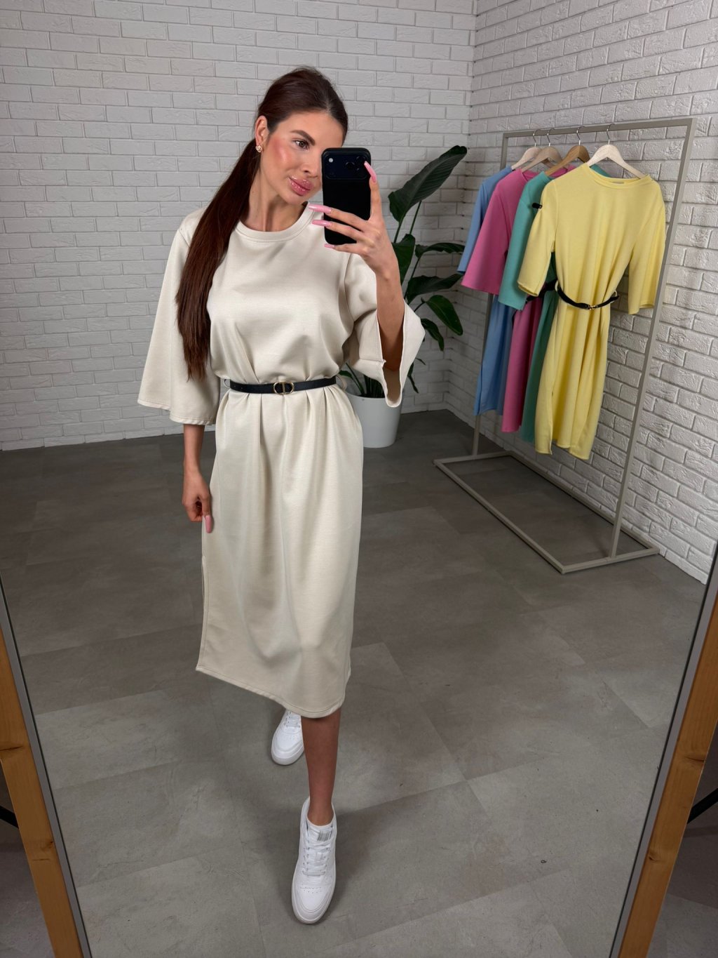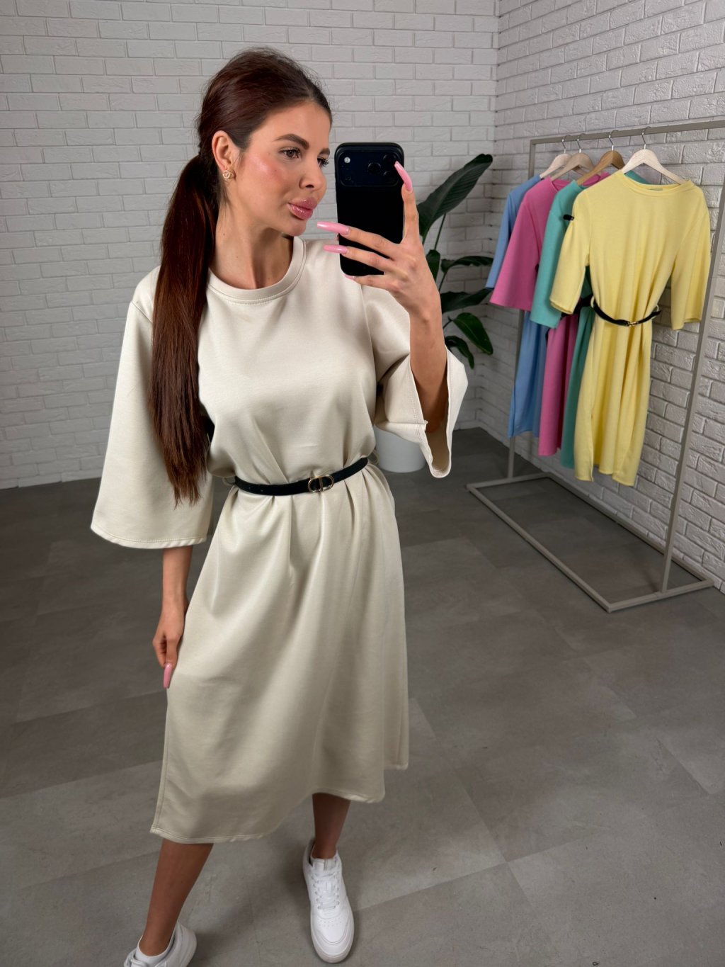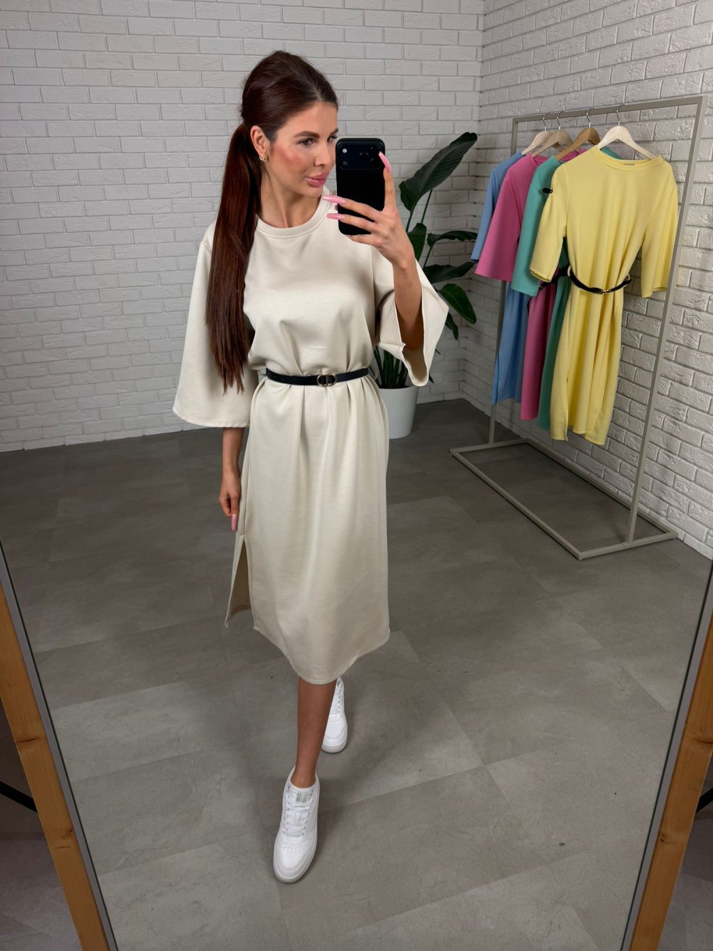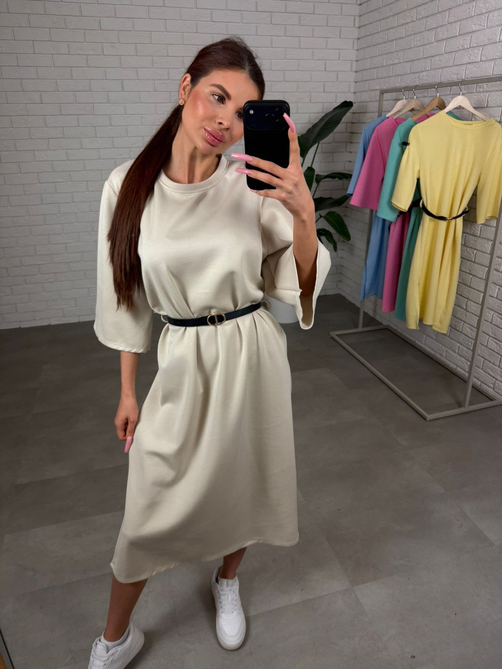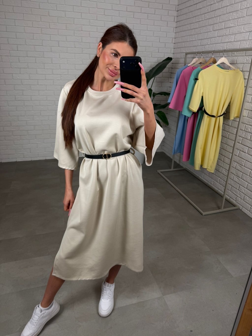 Midi délka působí elegantně a zároveň univerzálně, takže šaty jednoduše zkombinuješ s různými typy obuvi. Tříčtvrteční rukávy jsou volnější, takže se pohodlně přizpůsobí každému obvodu ruky a nic netlačí.