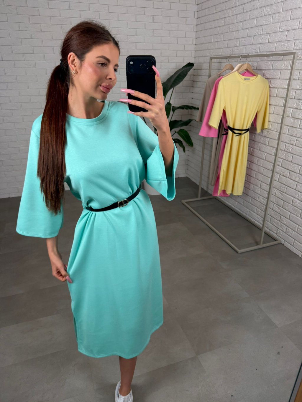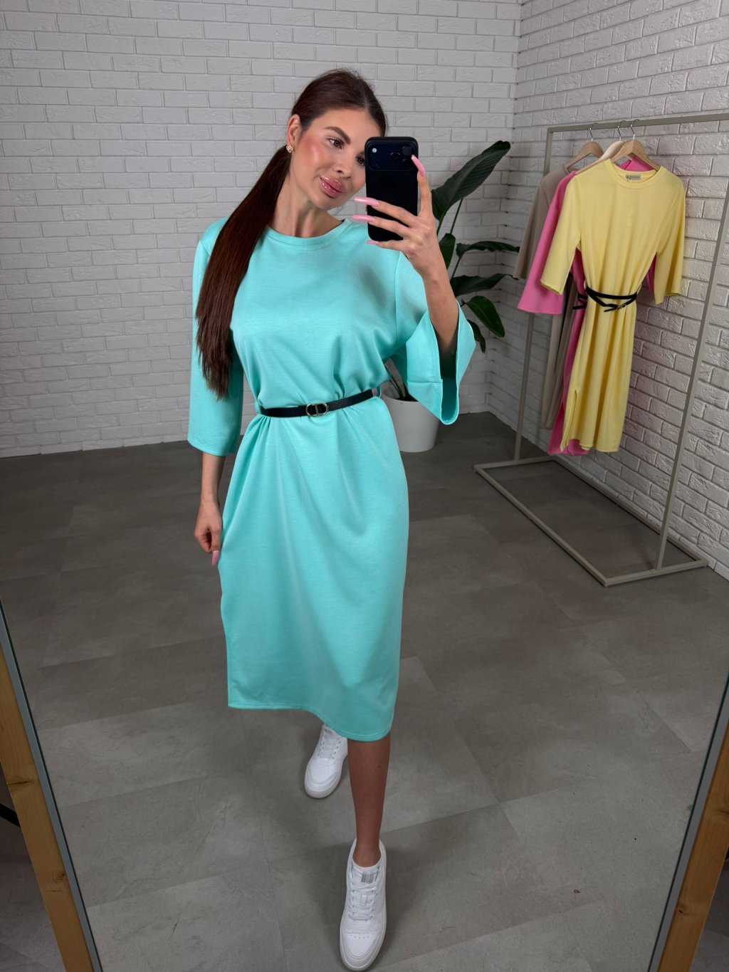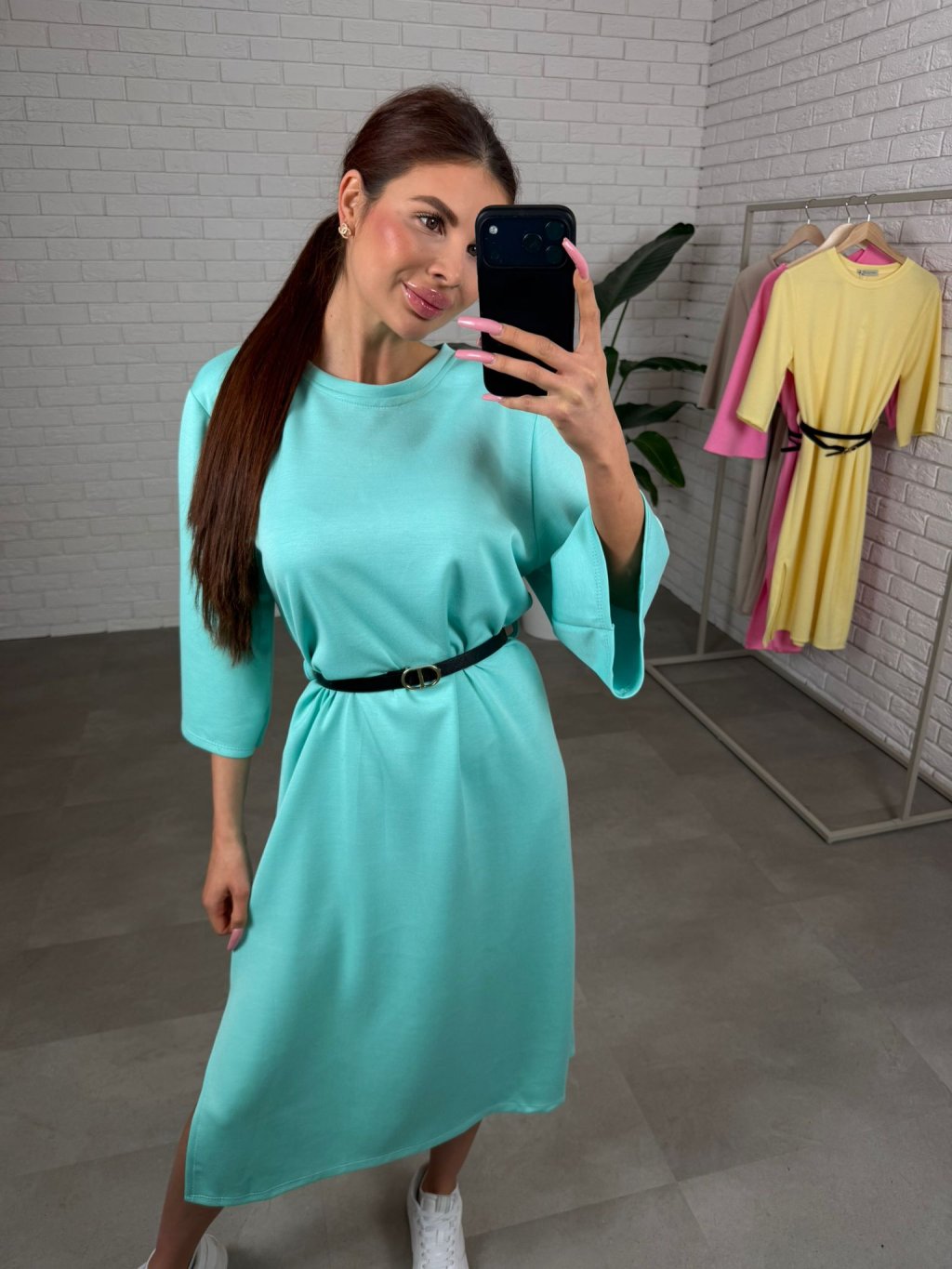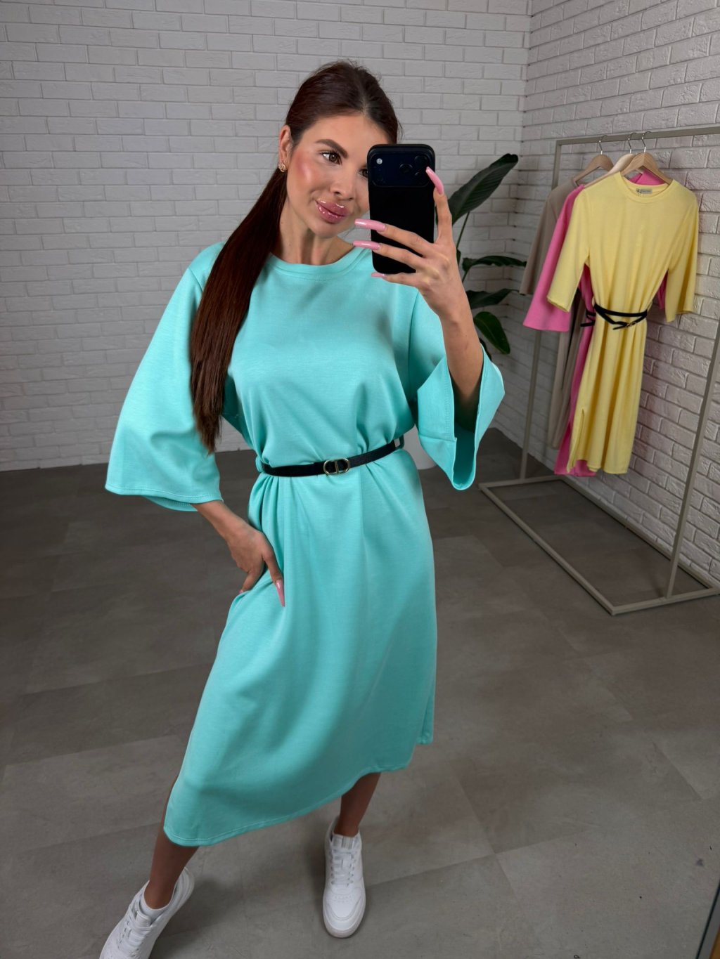 Midi délka působí elegantně a zároveň univerzálně, takže šaty jednoduše zkombinuješ s různými typy obuvi. Tříčtvrteční rukávy jsou volnější, takže se pohodlně přizpůsobí každému obvodu ruky a nic netlačí.