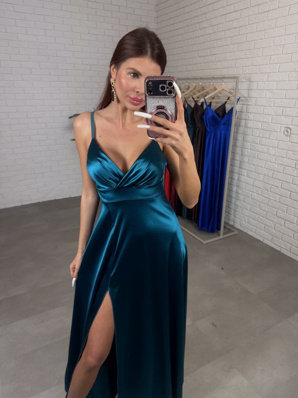 Společenské šaty FLORENTINA jsou ušity z kvalitního saténu v padavém střihu. Jsou bohaté na materiál. Horní část je vyztužena v oblasti prsou, díky čemuž šaty pěkně drží tvar, přičemž vzadu je skrytý zip. Sednou od XS po M a jsou vhodné po 180 cm. Ramínka jsou regulovatelná.