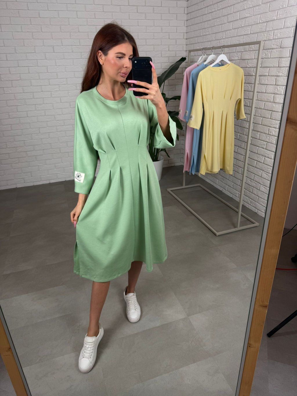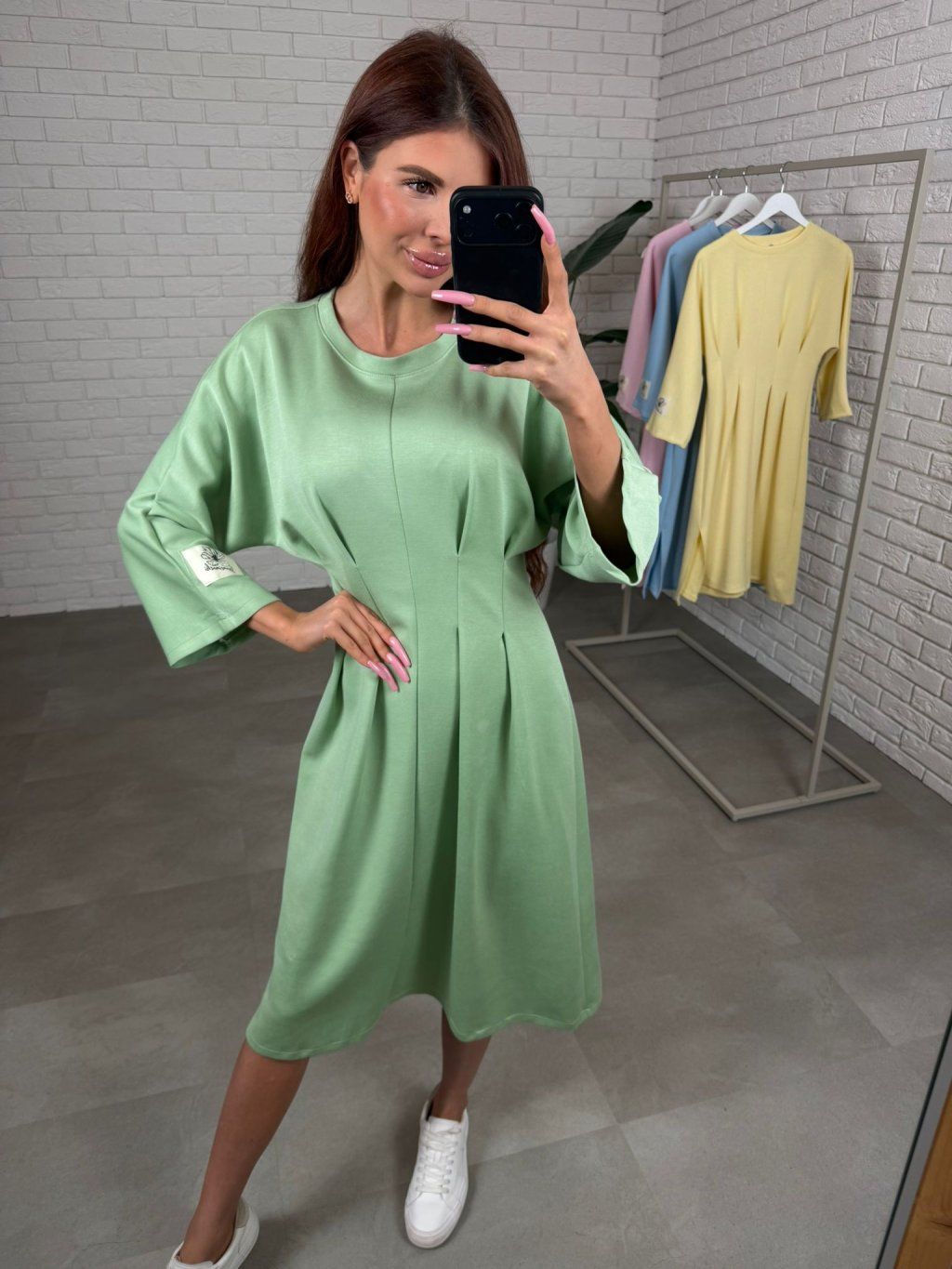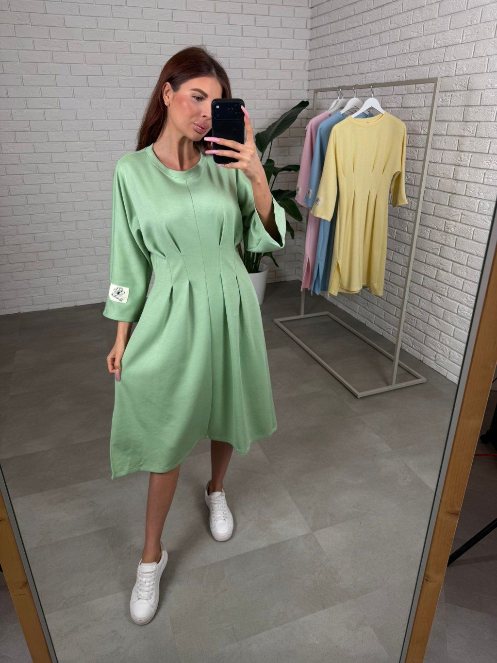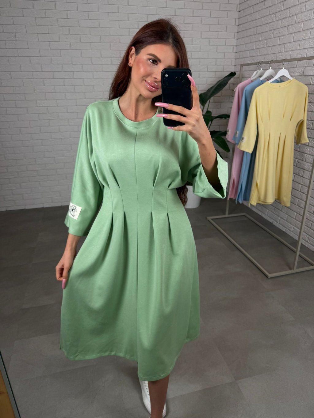 Šaty HUGO jsou ušity ze silnějšího materiálu, který si drží tvar a díky tomu působí upraveně i po celém dni. Midi délka těsně pod kolena je velmi nositelná a funguje skvěle na nižší i vyšší postavě. Nejvýraznějším detailem je překládaný prvek v pase, který opticky vytvaruje postavu, udělá užší pas a zároveň nechá pohodlí tam, kde jej potřebuješ, takže šaty sedí příjemně iv období těhotenského bříška. Tříčtvrteční rukáv působí prakticky a elegantně a na levém rukávu najdeš bílou nášivku, která šatům dodá moderní, nenucený detail. HUGO jsou ideální na dny, kdy chceš působit upraveně, stačí obout tenisky, holínky nebo lodičky a outfit funguje. Velikostně sedí od S po XL.