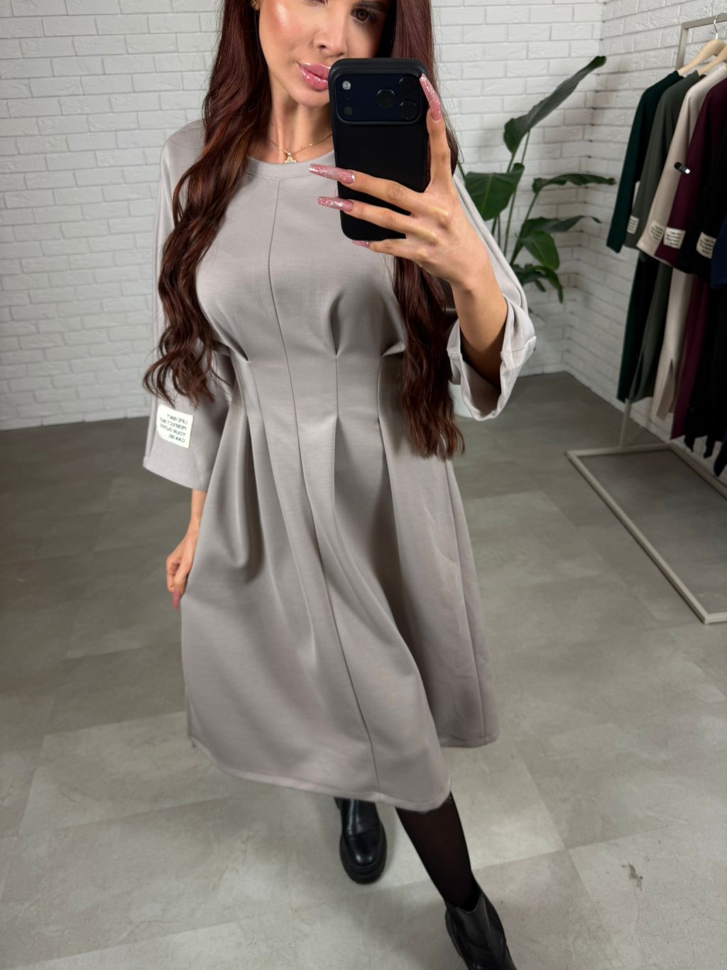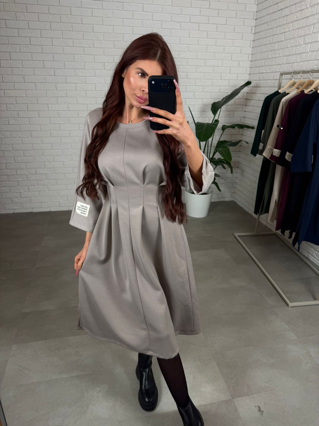 Šaty HUGO v midi délce sednou od S po XL. Délka těsně pod kolena. Vhodné pro nižší i vyšší postavy. V pase tvarující překládaný prvek, který opticky vytvaruje postavu a vytvoří užší pas. Tříčtvrteční rukáv. Na levém rukávu nášivka bílé barvy. Sednou i na těhotenské bříško. Šaty jsou ze silnějšího materiálu, který si drží svůj tvar.