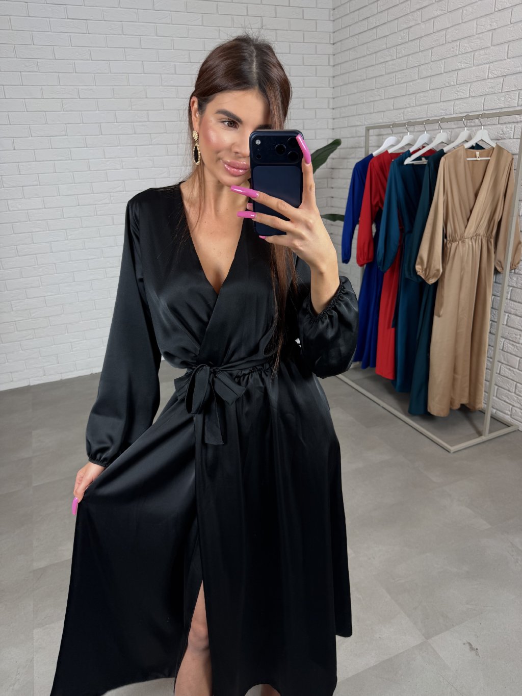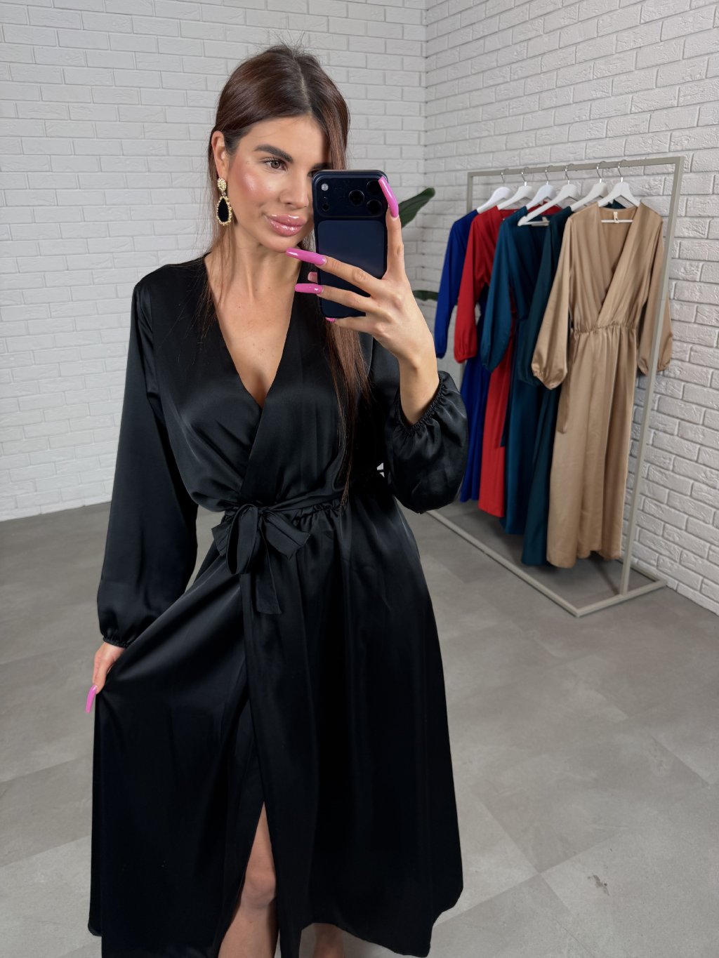 Šaty MARINA jsou vhodné pro konfekční velikosti od XS až po XL, jsou to zavinovací saténové šaty s možností zavázání v pase, mají dlouhý rukáv ukončený patentem, jsou vhodné pro výšku až do 180 cm, vhodné i na těhotenské bříško, modelka na fotce má 170 cm. Ideální na rande i jako plesové šaty.