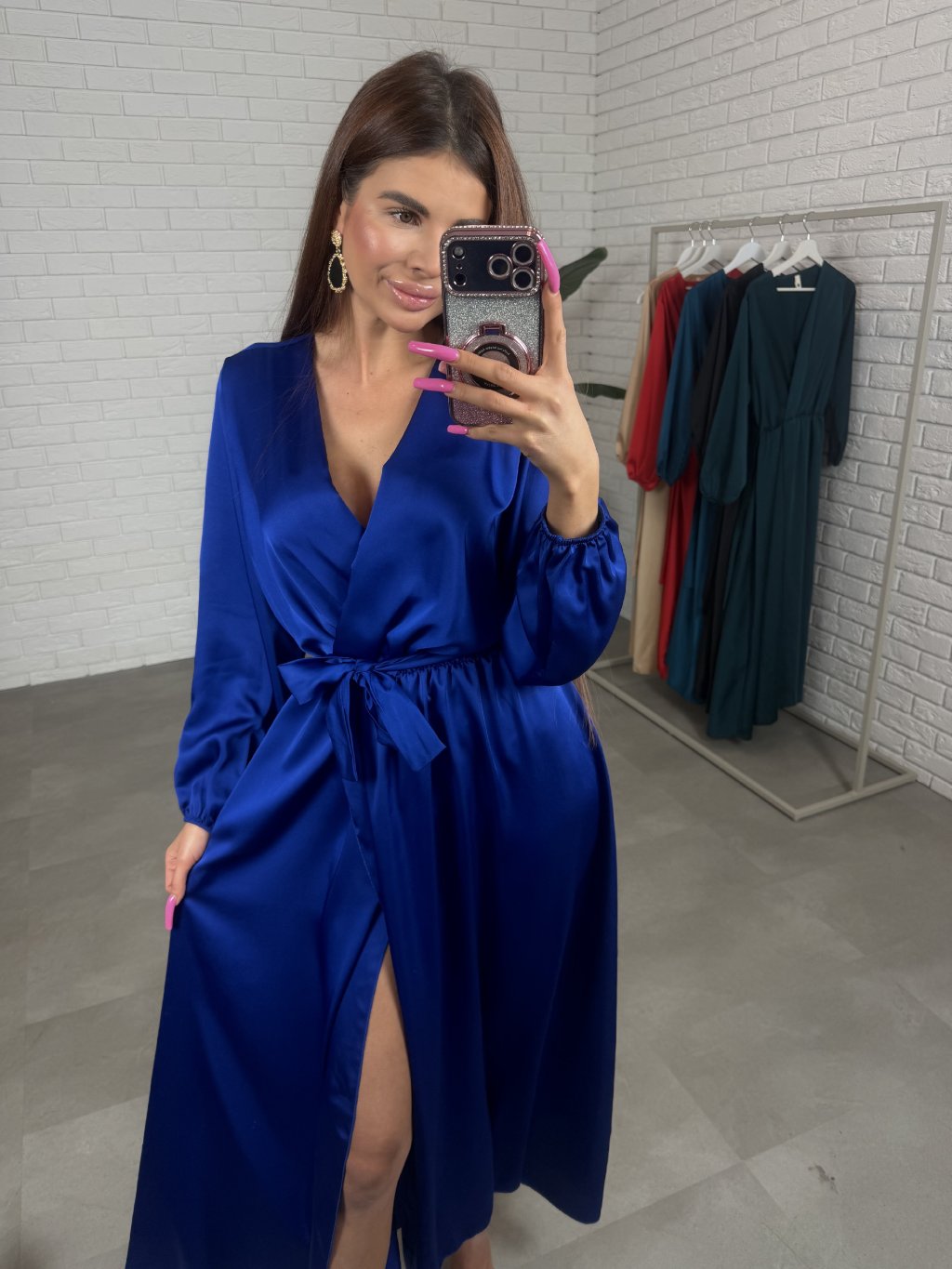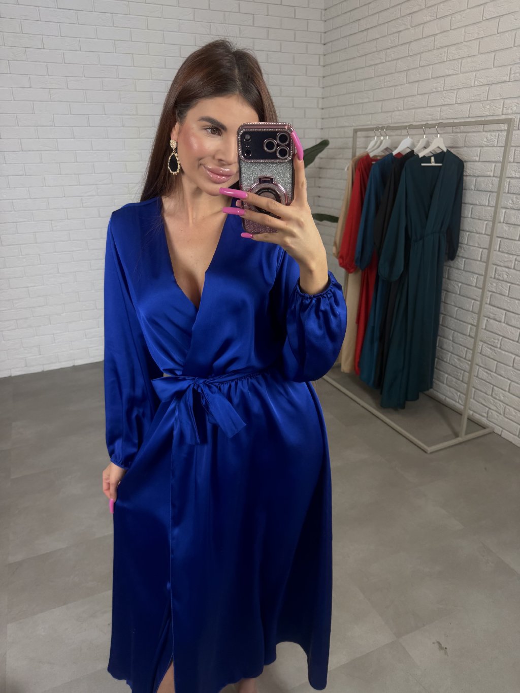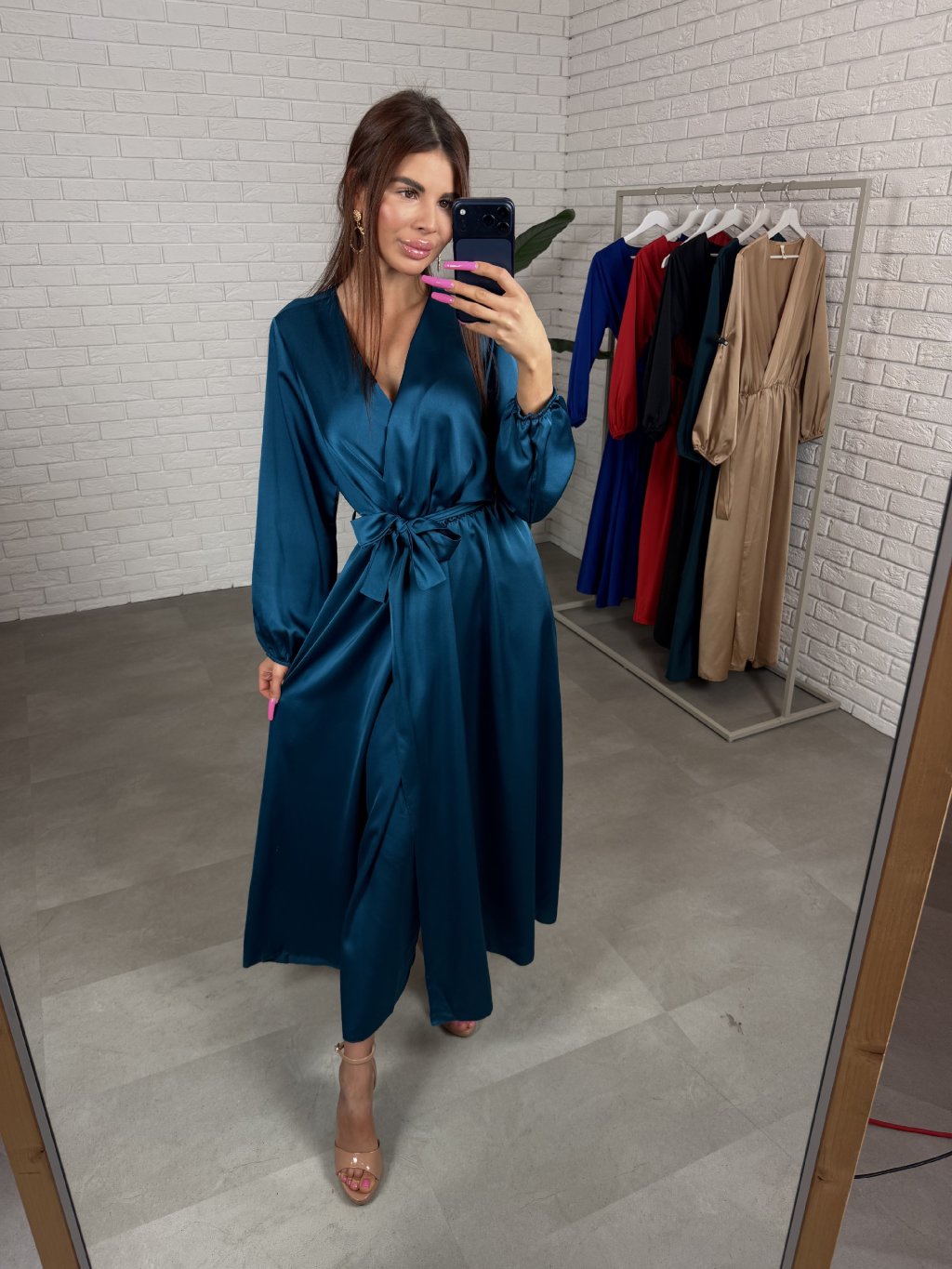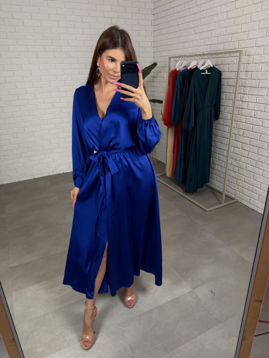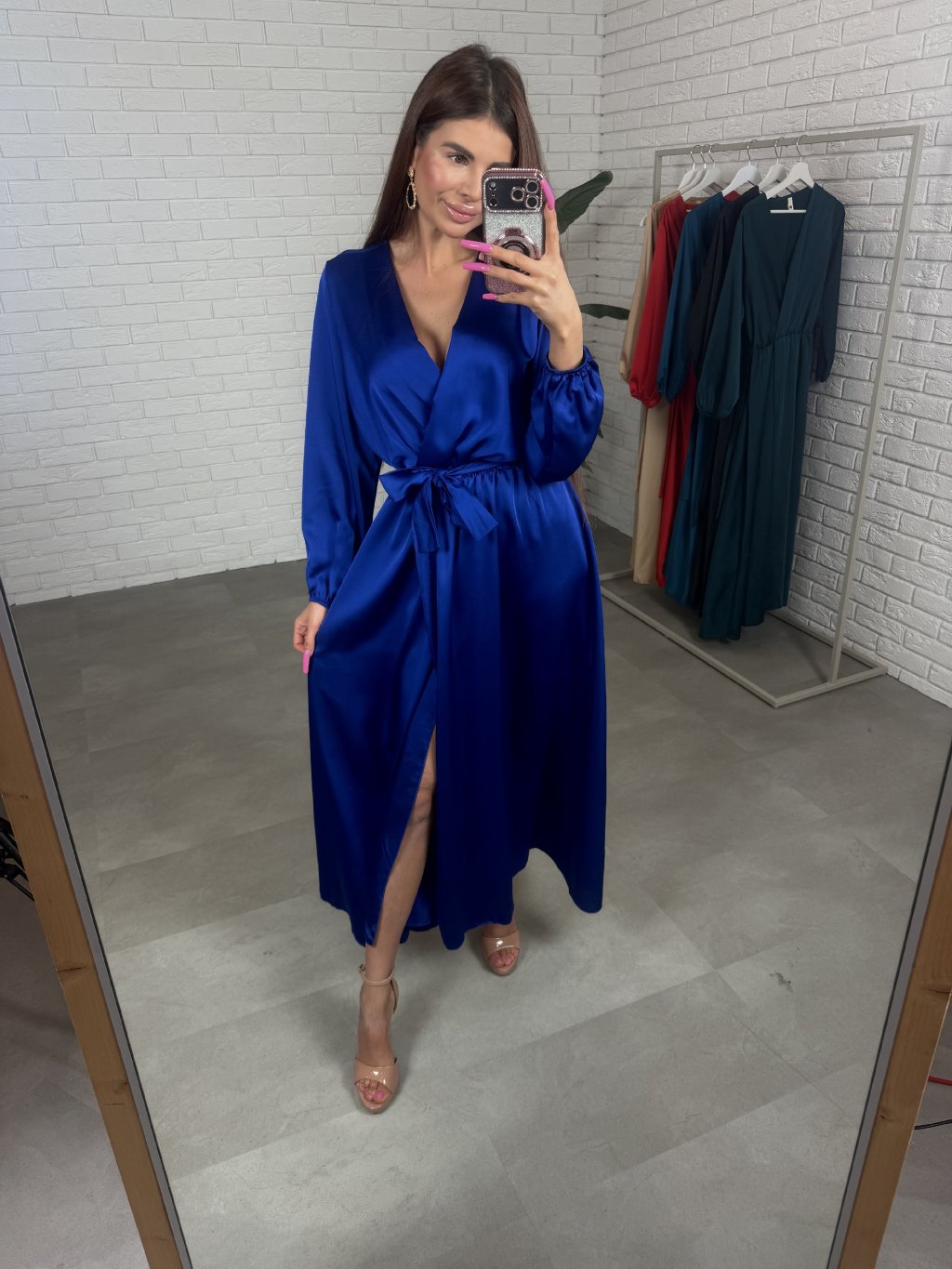 Šaty MARINA jsou vhodné pro konfekční velikosti od XS až po XL, jsou to zavinovací saténové šaty s možností zavázání v pase, mají dlouhý rukáv ukončený patentem, jsou vhodné pro výšku až do 180 cm, vhodné i na těhotenské bříško, modelka na fotce má 170 cm. Ideální na rande i jako plesové šaty.