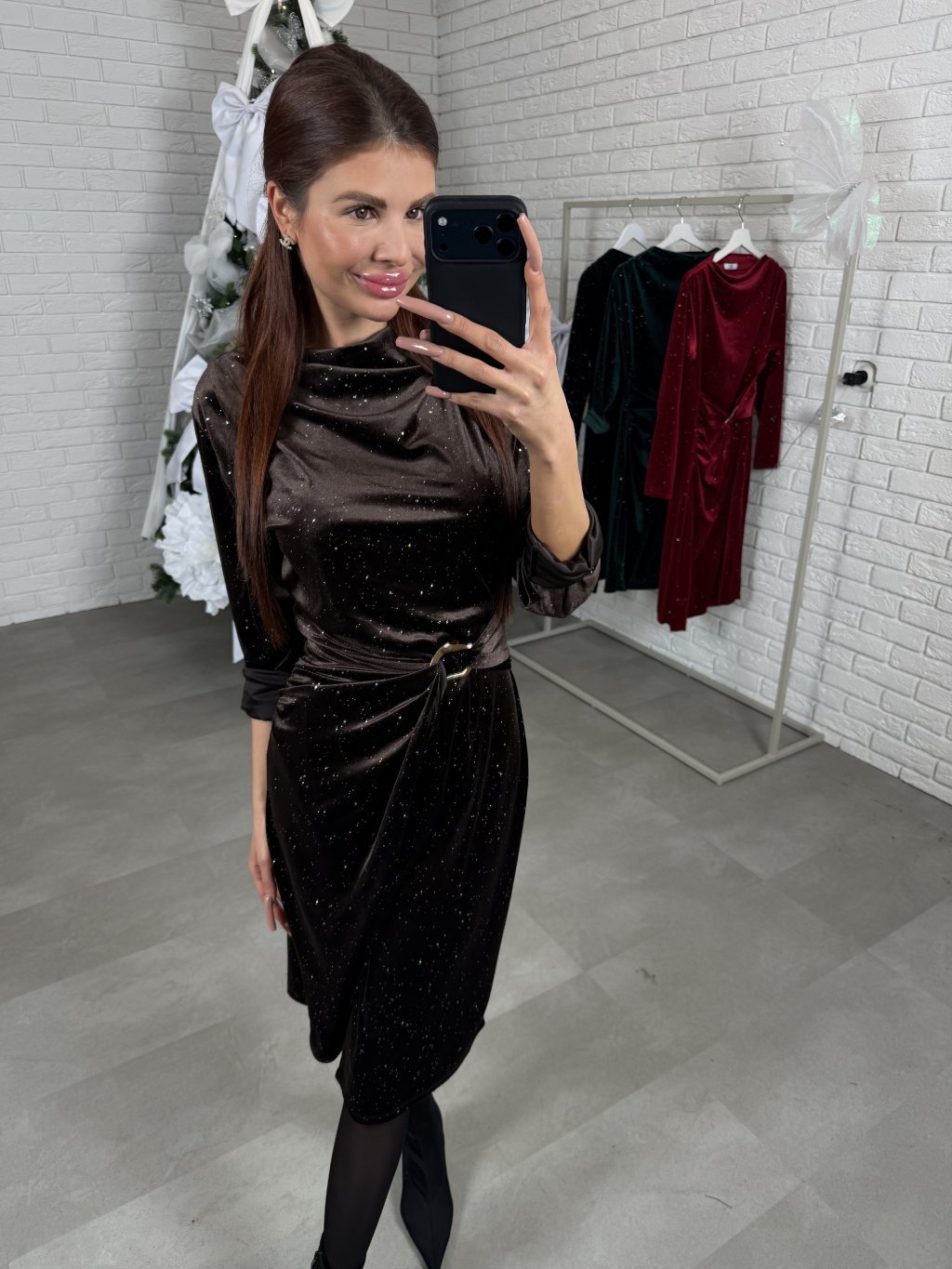 Šaty MATOL jsou vyrobeny ze sametového, třpytivého a elastického materiálu. Šaty jsou v délce těsně pod kolena, v pase jsou překládané, takže zakryjí případné nedokonalosti v oblati bříška. Zlatá sponav pase ti krásně vytvaruje postavu.Sednou na konfekční velikost od M po XL. Kolem krku mají padavý poloroláčkový límec. Sednou na kočky po 185 cm. Modelka na fotce má 170 cm.