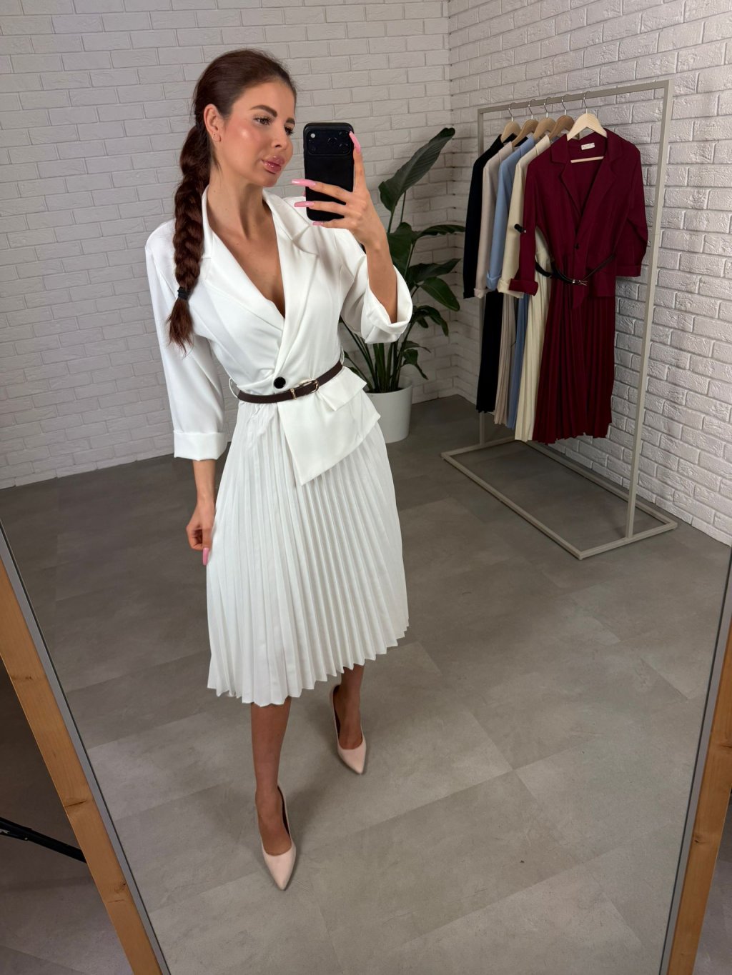 Šaty MONY jsou elegantní a nadčasový kousek, který krásně zvýrazní ženskou siluetu a zároveň poskytne pohodlí během celého dne. Áčkový střih lichotí zejména postavám s výraznější spodní částí těla, takže přirozeně zakryje boky, stehna či zadeček a vytvoří pěknou vyváženou siluetu. Šaty MONY jsou elegantní a nadčasový kousek, který krásně zvýrazní ženskou siluetu a zároveň poskytne pohodlí během celého dne. Áčkový střih lichotí zejména postavám s výraznější spodní částí těla, takže přirozeně zakryje boky, stehna či zadeček a vytvoří pěknou vyváženou siluetu. Plisovaná sukně z kvalitního italského materiálu dodává šatům elegantní pohyb a působí velmi žensky. Materiál je příjemný na dotek, drží si tvar a vůbec se nemačká, takže šaty vypadají upraveně i po celodenním nošení.