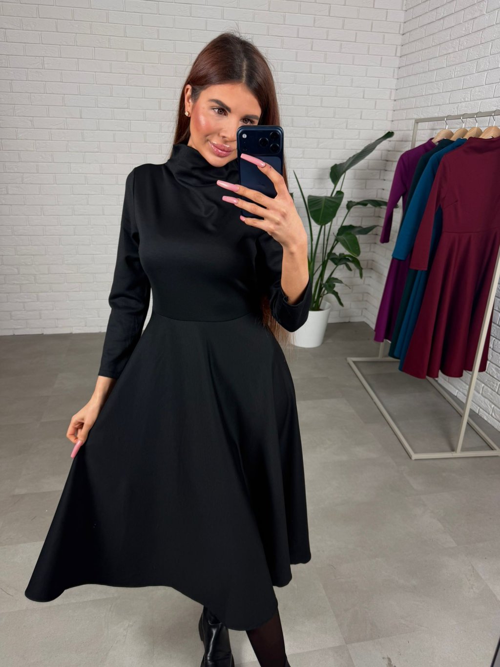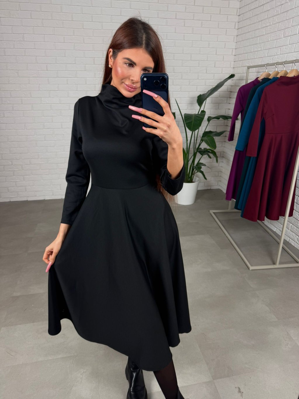 Šaty NAMIRA jsou v pohodlném dlouhém áčkovém střihu, který krásně lichotí každé postavě. Na zadní straně se nachází skrytý zip, díky kterému se šaty snadno oblékají, a polorolákový vršek jim dodává jemný nádech elegance. Délka sahá pod kolena až ke lýtkům (modelka měří 170 cm) a volnější střih v oblasti bříška, boků a pasu zajišťuje maximální pohodlí, takže jsou vhodné i pro těhotenské bříško. Šaty mají delší rukáv. Velikostně doporučujeme od XS až po menší L, aby šaty krásně vynikly na postavě. Délka šatů není omezující, a proto sedne na každou výšku, ideální jsou však pro kočky vyšší než 160 cm.