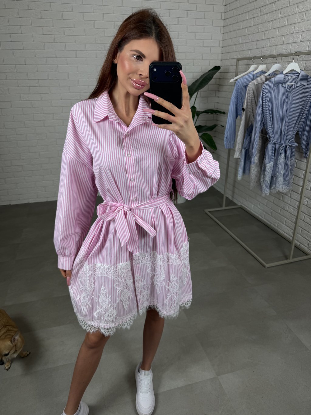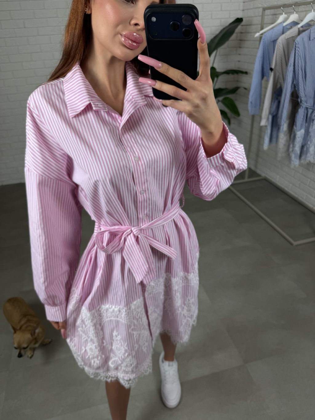 Dominantním detailem je jemná romantická krajka na spodní části šatů, která modelu dodává ženský a elegantní nádech. Svislé pásky opticky zeštíhlují siluetu a pásek v pase krásně zvýrazní ženské křivky. Praktickým detailem jsou také kapsy po bocích, které oceníš při každodenním nošení.