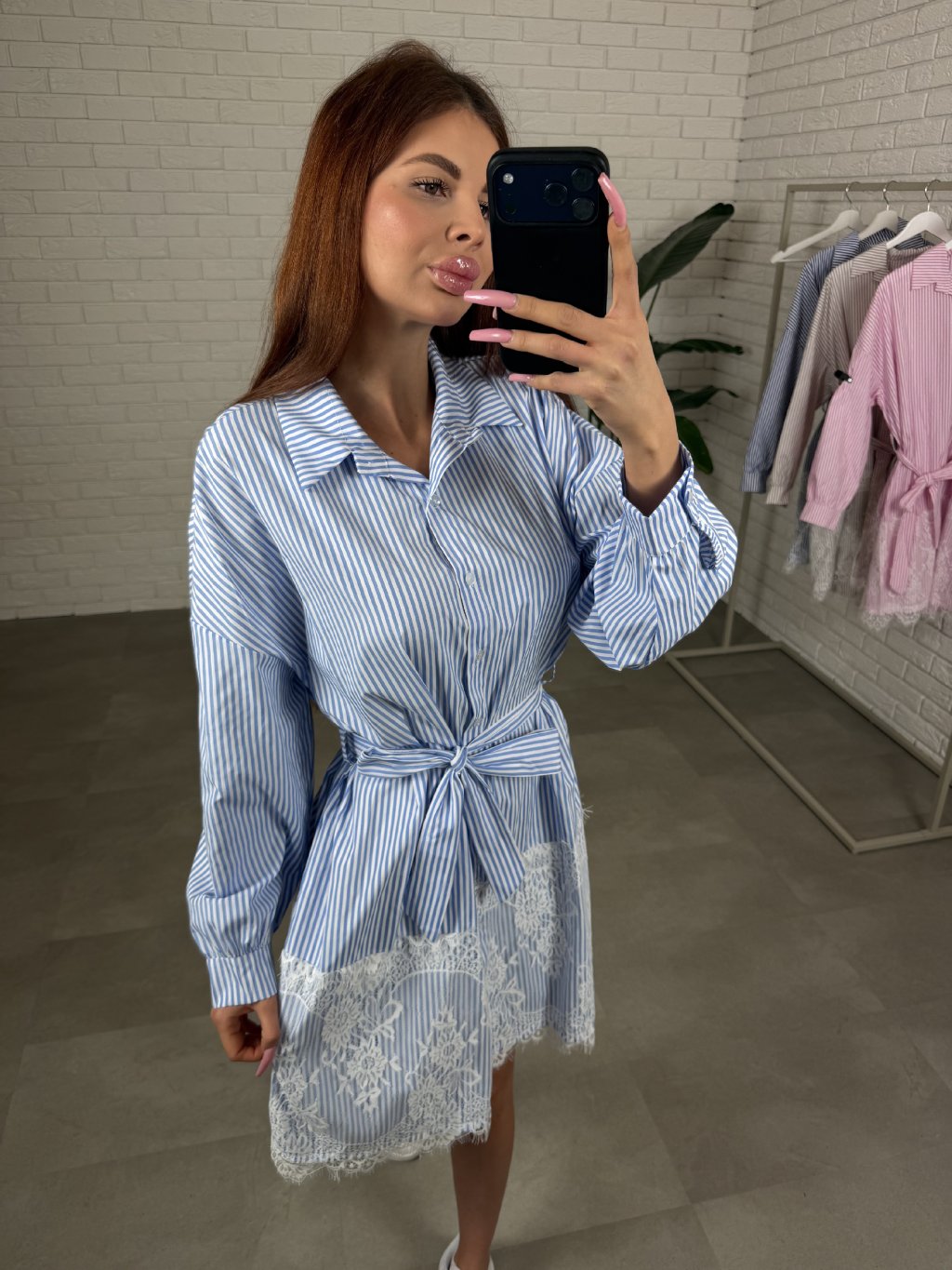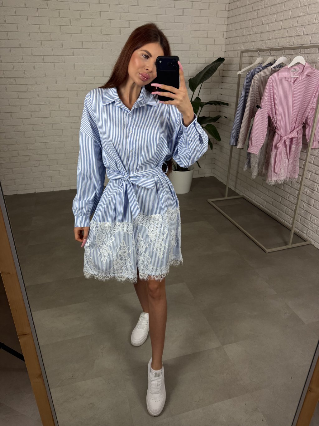 Dominantním detailem je jemná romantická krajka na spodní části šatů, která modelu dodává ženský a elegantní nádech. Svislé pásky opticky zeštíhlují siluetu a pásek v pase krásně zvýrazní ženské křivky. Praktickým detailem jsou také kapsy po bocích, které oceníš při každodenním nošení.