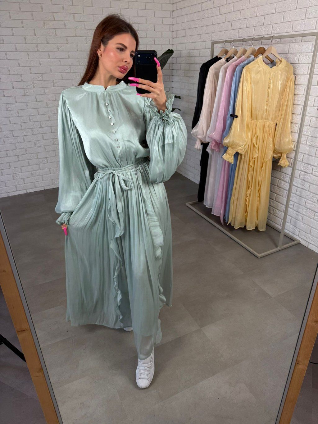 Šaty PLUTO jsou výrazný a elegantní kousek, který působí luxusně a zároveň se velice příjemně nosí. Vrchní část je doplněna ozdobnými knoflíčky a jemně lesklým materiálem, který krásně vynikne při pohybu a dodává šatům výjimečný charakter. Rukávy jsou volné a zakončené elastickou gumičkou, takže se pohodlně přizpůsobí každé ručičce bez pocitu omezení. Bohatá sukýnka vytváří ženský efekt a díky podšívce se šaty nosí komfortně během celého dne.