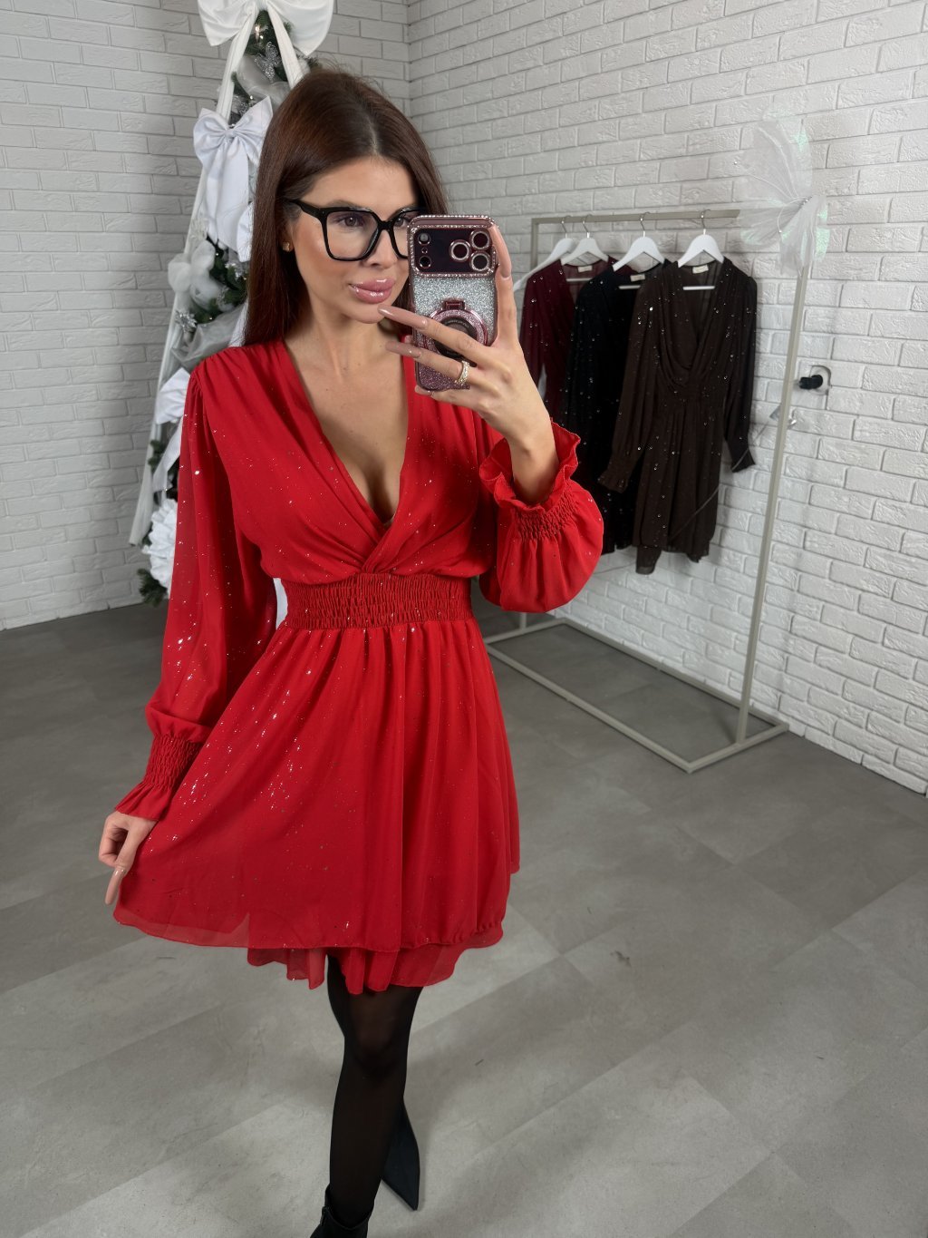Šaty RENA sednou na každý typ postavy, mají áčkový střih, dvouvrstvou kaskádovou sukýnku, která vytváří nadýchaný dojem a zamaskuje všechny nedokonalosti, sedí na menší ai větší dekolt, jelikož je překládaný, rozšířený rukávek, třpytivý materiál, který nepopadá, sednou od XS po menší L a výš bříško.