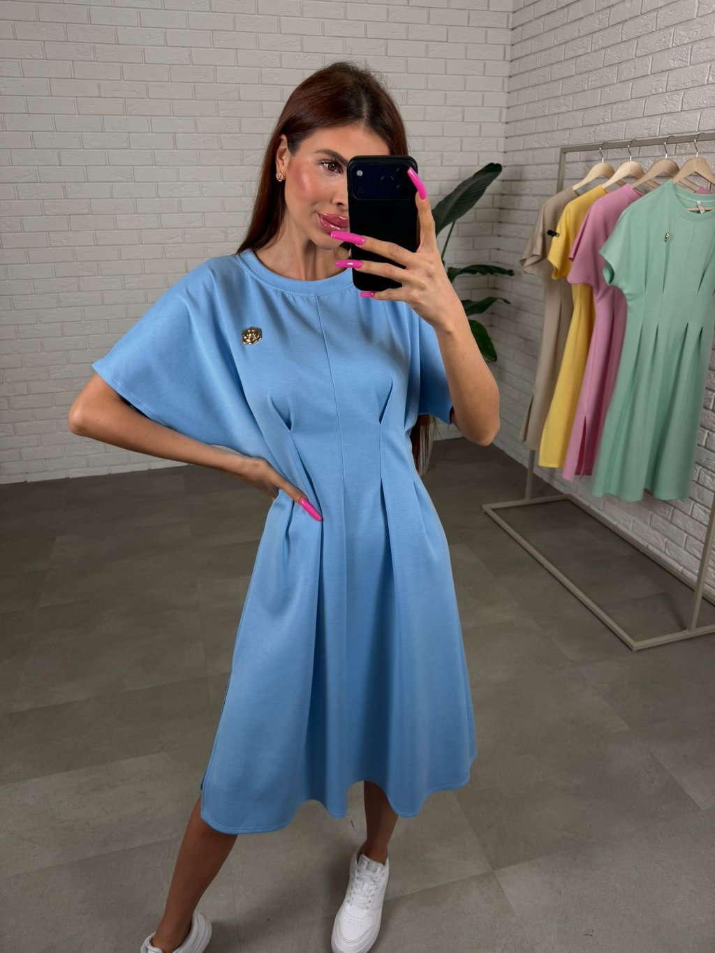Šaty TIMON majú prekladaný áčkový strih krásne zvýrazní pás a pomáha dotvoriť peknú ženskú siluetu. V oblasti bruška, bokov aj zadočku sú šaty voľné a ležérne, takže sú ideálne najmä pre typ postavy hruška alebo jablko. Práve vďaka tomuto strihu sú vhodné aj pre kočky po pôrode alebo na tehotenské bruško. Prekladaný áčkový strih krásne zvýrazní pás a pomáha dotvoriť peknú ženskú siluetu. V oblasti bruška, bokov aj zadočku sú šaty voľné a ležérne, takže sú ideálne najmä pre typ postavy hruška alebo jablko. Práve vďaka tomuto strihu sú vhodné aj pre kočky po pôrode alebo na tehotenské bruško. Dĺžkovo siahajú takto pod kolena, takže sú podľa mňa vhodné pre kočky s výškou 165 cm.