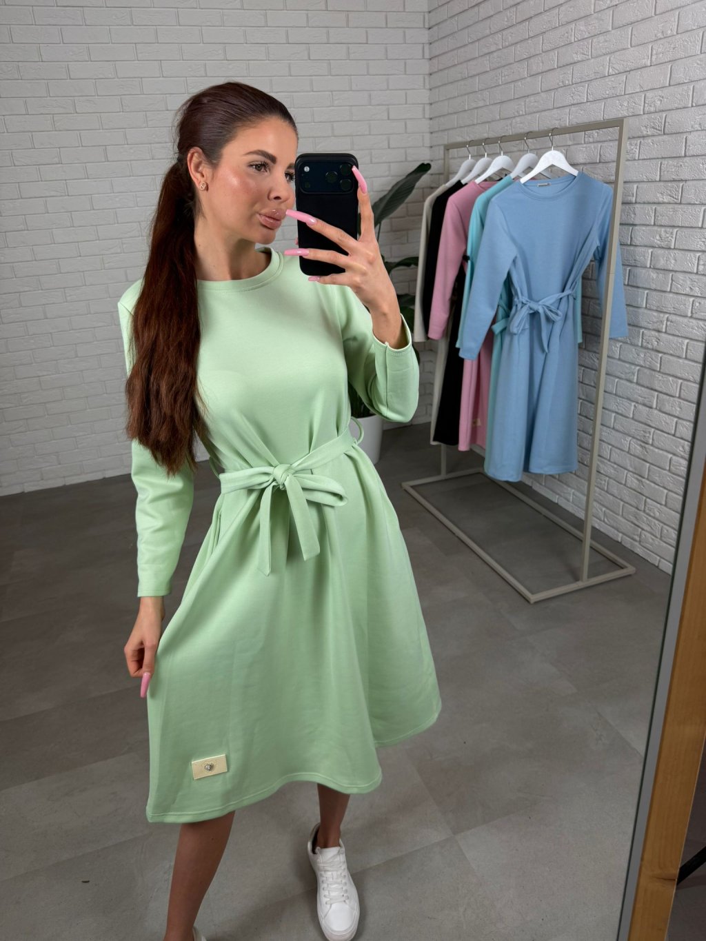 Šaty ZAMBA v midi délce jsou ušité z příjemného kvalitního poloteplákového materiálu, který si drží tvar a působí upraveně i po celém dni. Áčkový střih je krásně ženský, jemně zakryje to, co chceš schovat, takže se v nich cítíš přirozeně a pohodlně, i když máš těhotenské bříško. Opasek na zavázání si můžeš nastavit přesně podle sebe, takže zvýrazníš pas a vytvoříš pěknou siluetu, ale bez problémů je můžeš nosit i bez opasku. Dlouhý rukáv přidává šatům praktický komfort a po bocích najdeš hluboké kapsy, které oceníš při běžném nošení. ZAMBA jsou ideální na dny, kdy chceš být upravená bez zbytečného řešení, stačí obout tenisky, kozačky nebo lodičky a outfit je hotový. Velikostně sedí od XS po XL a výškově jsou vhodné pro kočky do 185 cm.