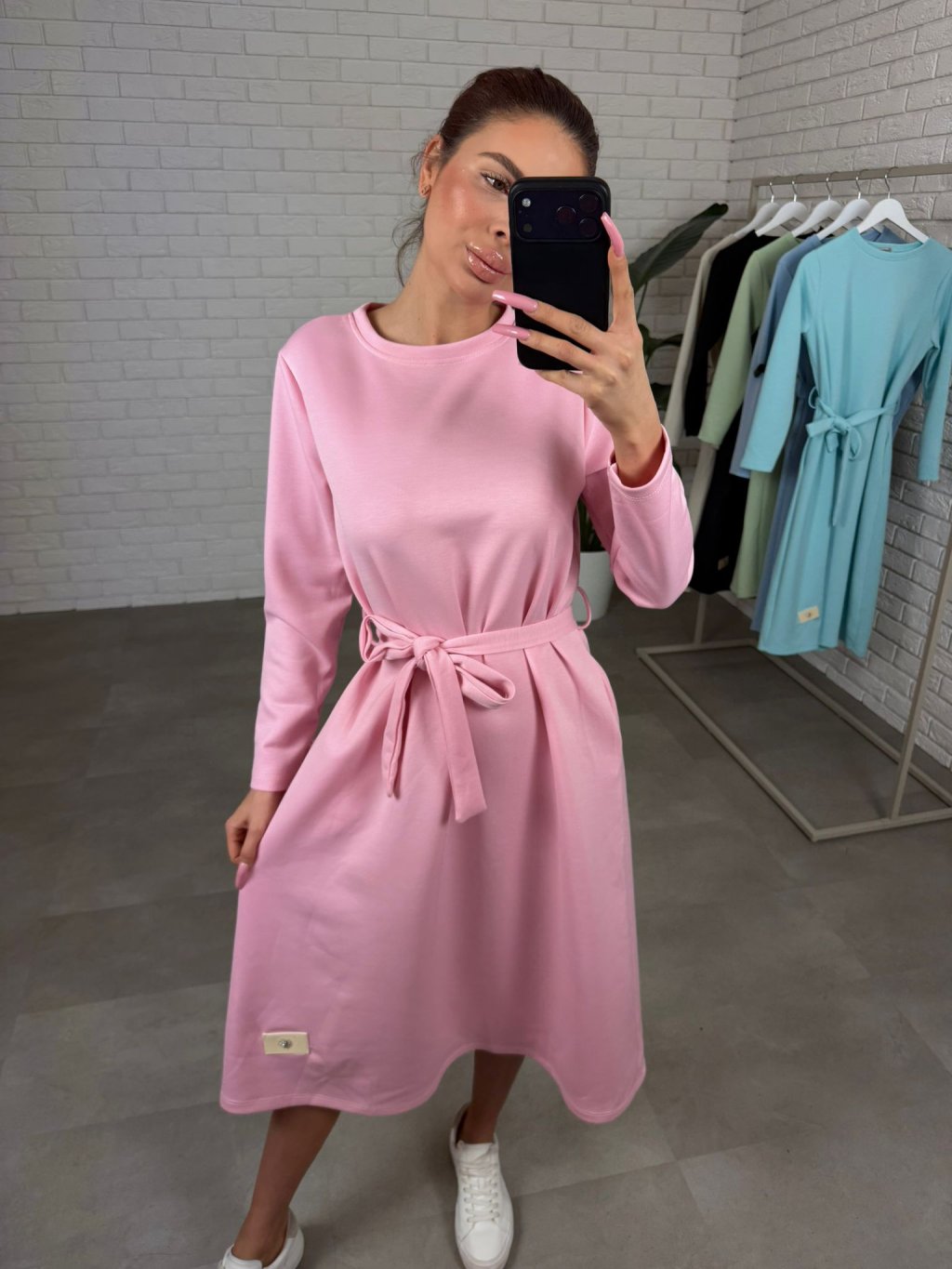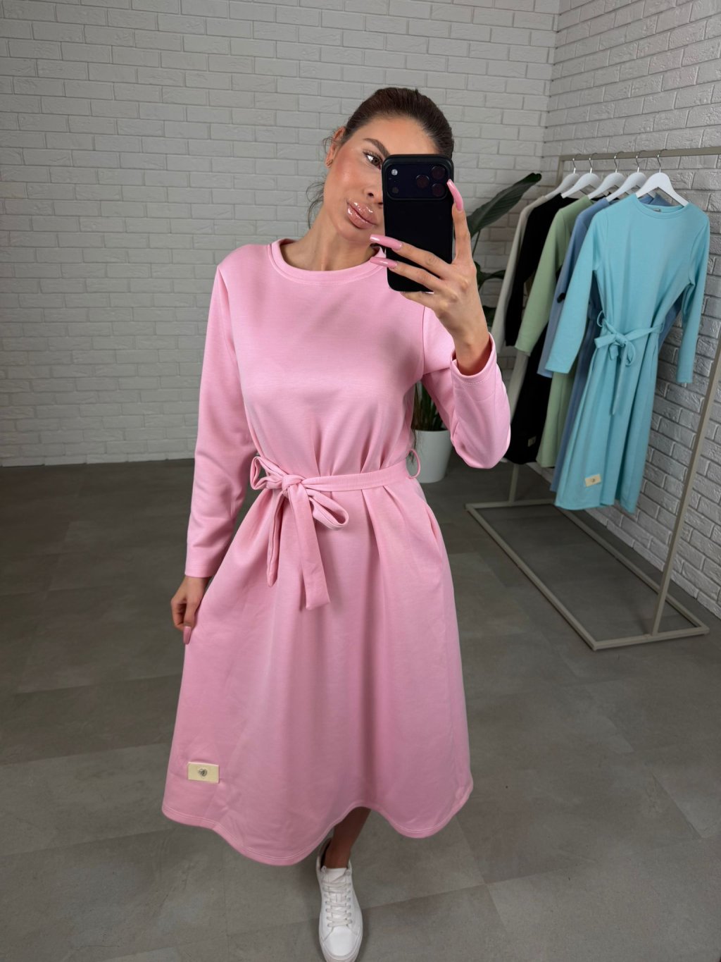 Šaty ZAMBA v midi délce jsou ušité z příjemného kvalitního poloteplákového materiálu, který si drží tvar a působí upraveně i po celém dni. Áčkový střih je krásně ženský, jemně zakryje to, co chceš schovat, takže se v nich cítíš přirozeně a pohodlně, i když máš těhotenské bříško. Opasek na zavázání si můžeš nastavit přesně podle sebe, takže zvýrazníš pas a vytvoříš pěknou siluetu, ale bez problémů je můžeš nosit i bez opasku. Dlouhý rukáv přidává šatům praktický komfort a po bocích najdeš hluboké kapsy, které oceníš při běžném nošení. ZAMBA jsou ideální na dny, kdy chceš být upravená bez zbytečného řešení, stačí obout tenisky, kozačky nebo lodičky a outfit je hotový. Velikostně sedí od XS po XL a výškově jsou vhodné pro kočky do 185 cm.