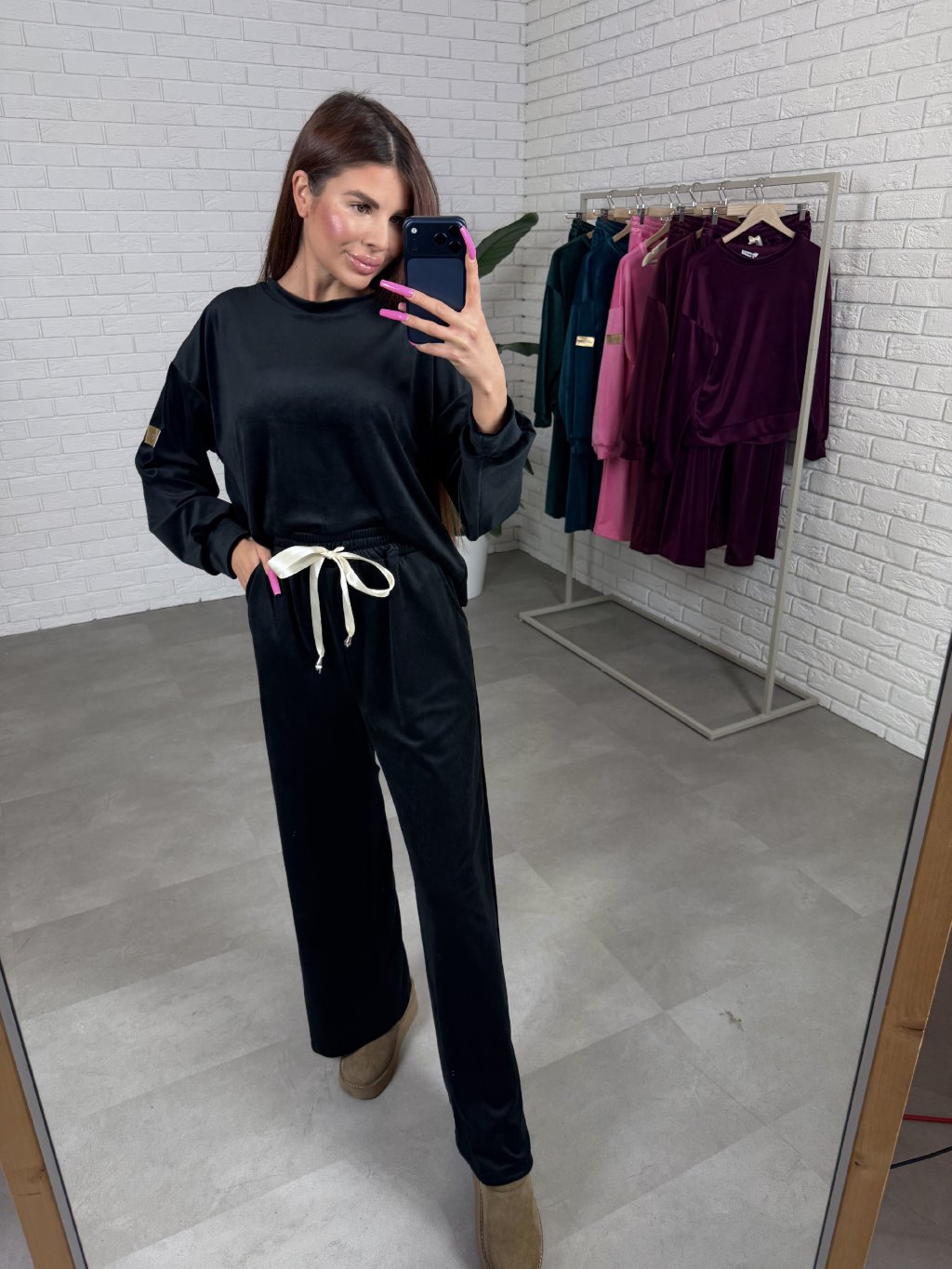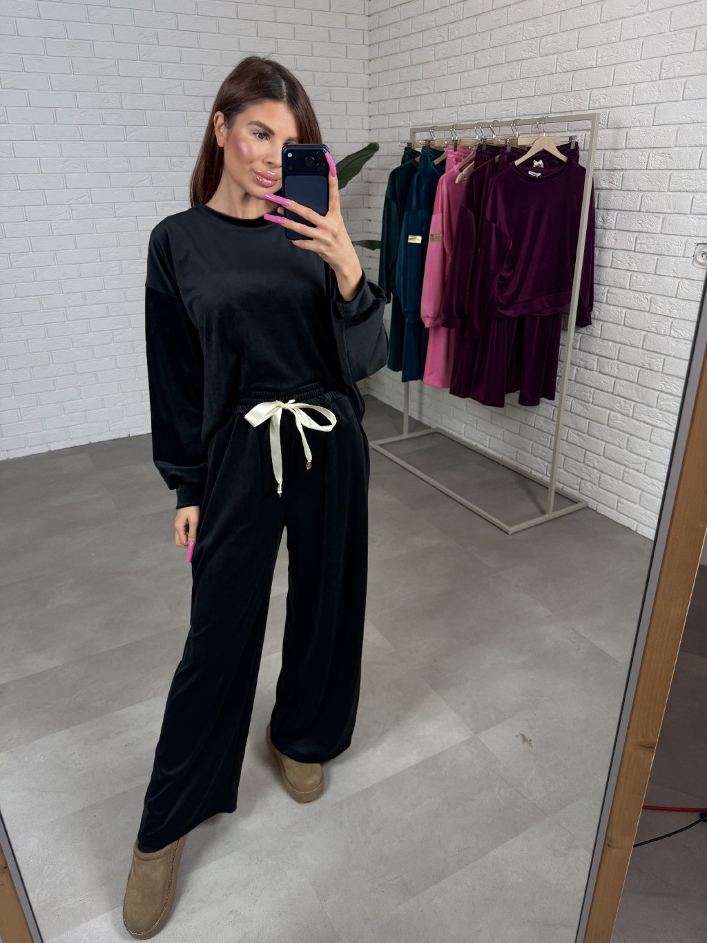 Sametová souprava BENOR v rozšířeném zvoném střihu má elastický pas. V pase je krásná mašlička díky čemuž kalhoty sednou od XS po XL. V pase elastická gumka. Rukávy na mikině jsou ukončeny patentem. Kalhoty jsou ve zvonovém střihu. Po bocích se nacházejí kapsy. Souprava sedne i na vyšší dívky. Jednotlivé kousky můžeš nosit i zvlášť. Tato sada je dokonalým spojením pohodlí a stylu – ideální volba pro moderní ženu, která miluje sportovní eleganci v každém okamžiku ✨👟