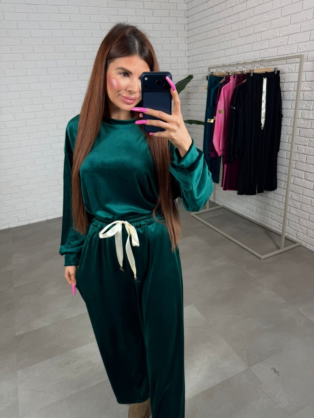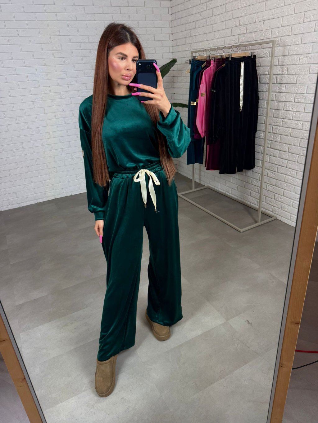 Sametová souprava BENOR v rozšířeném zvoném střihu má elastický pas. V pase je krásná mašlička díky čemuž kalhoty sednou od XS po XL. V pase elastická gumka. Rukávy na mikině jsou ukončeny patentem. Kalhoty jsou ve zvonovém střihu. Po bocích se nacházejí kapsy. Souprava sedne i na vyšší dívky. Jednotlivé kousky můžeš nosit i zvlášť. Tato sada je dokonalým spojením pohodlí a stylu – ideální volba pro moderní ženu, která miluje sportovní eleganci v každém okamžiku ✨👟