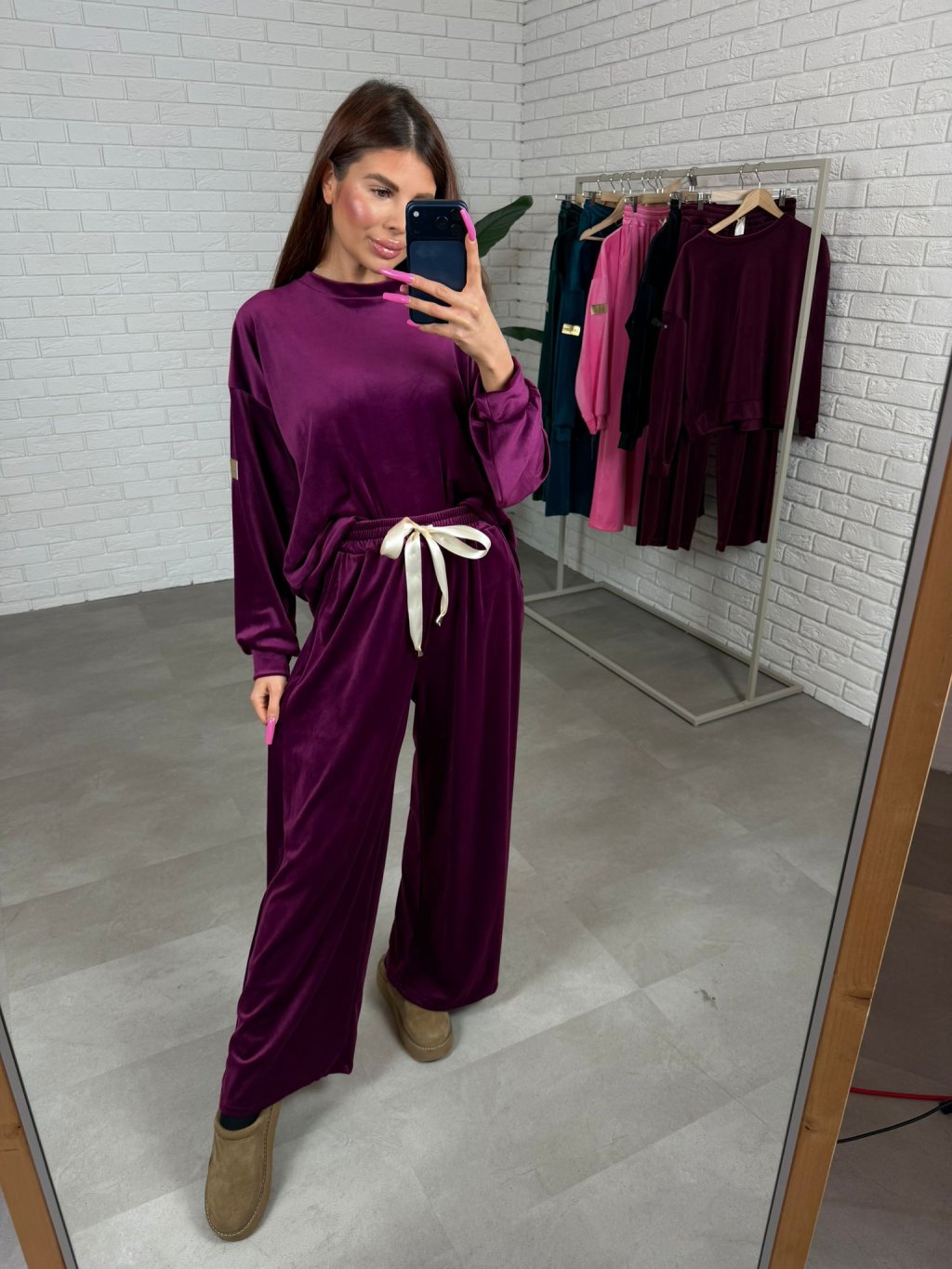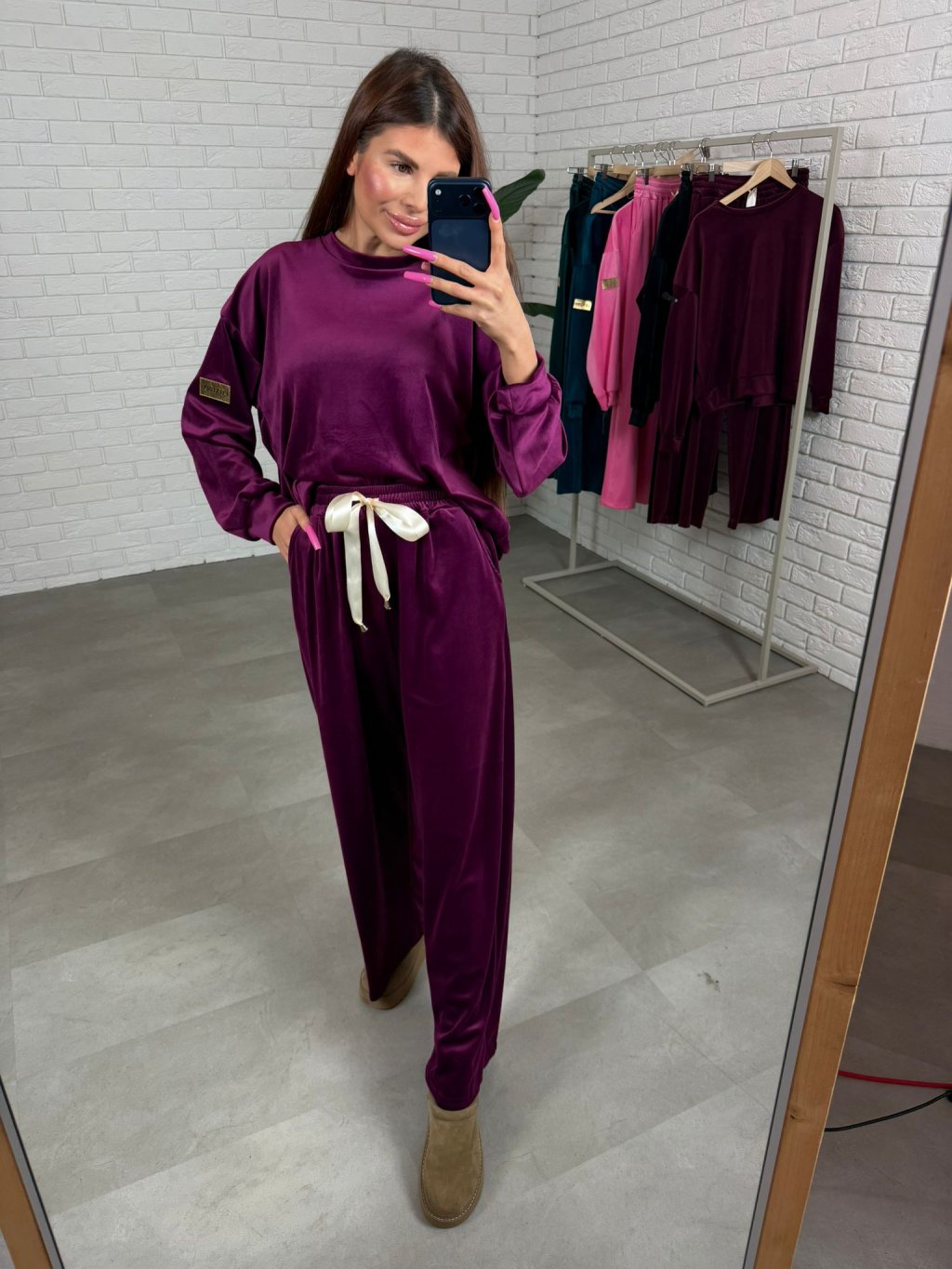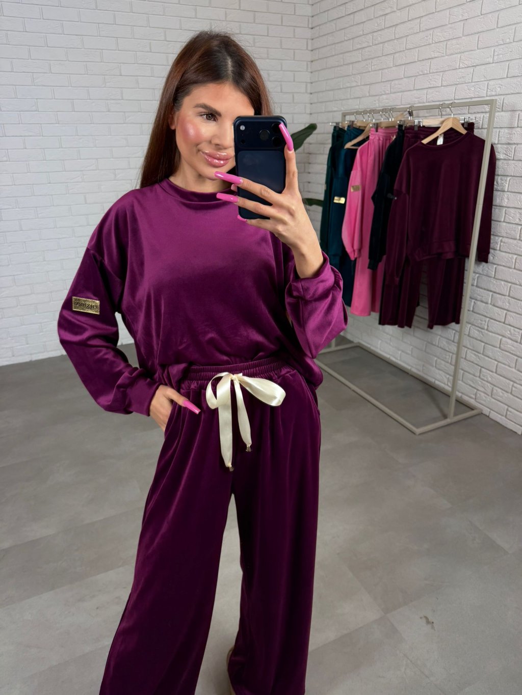 Sametová souprava BENOR v rozšířeném zvoném střihu má elastický pas. V pase je krásná mašlička díky čemuž kalhoty sednou od XS po XL. V pase elastická gumka. Rukávy na mikině jsou ukončeny patentem. Kalhoty jsou ve zvonovém střihu. Po bocích se nacházejí kapsy. Souprava sedne i na vyšší dívky. Jednotlivé kousky můžeš nosit i zvlášť. Tato sada je dokonalým spojením pohodlí a stylu – ideální volba pro moderní ženu, která miluje sportovní eleganci v každém okamžiku ✨👟