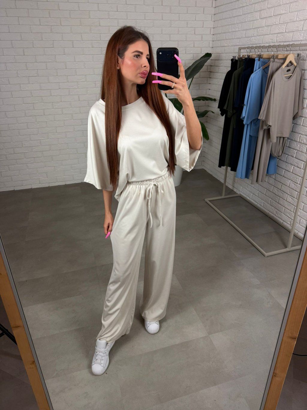 Vrchní díl má volný ležérní střih, který poskytuje pohodlí během celého dne, zatímco kalhoty jsou rovněž volné a neomezují v pohybu. V pase se nachází šňůrka, díky které si umíš komplet jednoduše přizpůsobit podle své postavy.