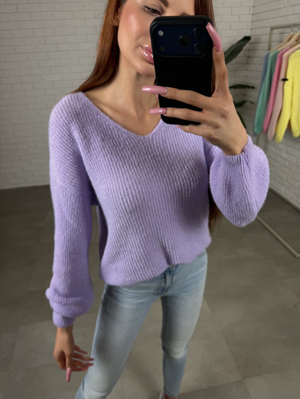 Jemný výstřih do V působí žensky a elegantně, takže svetřík se snadno kombinuje s kalhotami, džíny i sukněmi. Rukávy mají volnější elastický střih, který se přizpůsobí postavě a poskytuje pohodlí při pohybu.