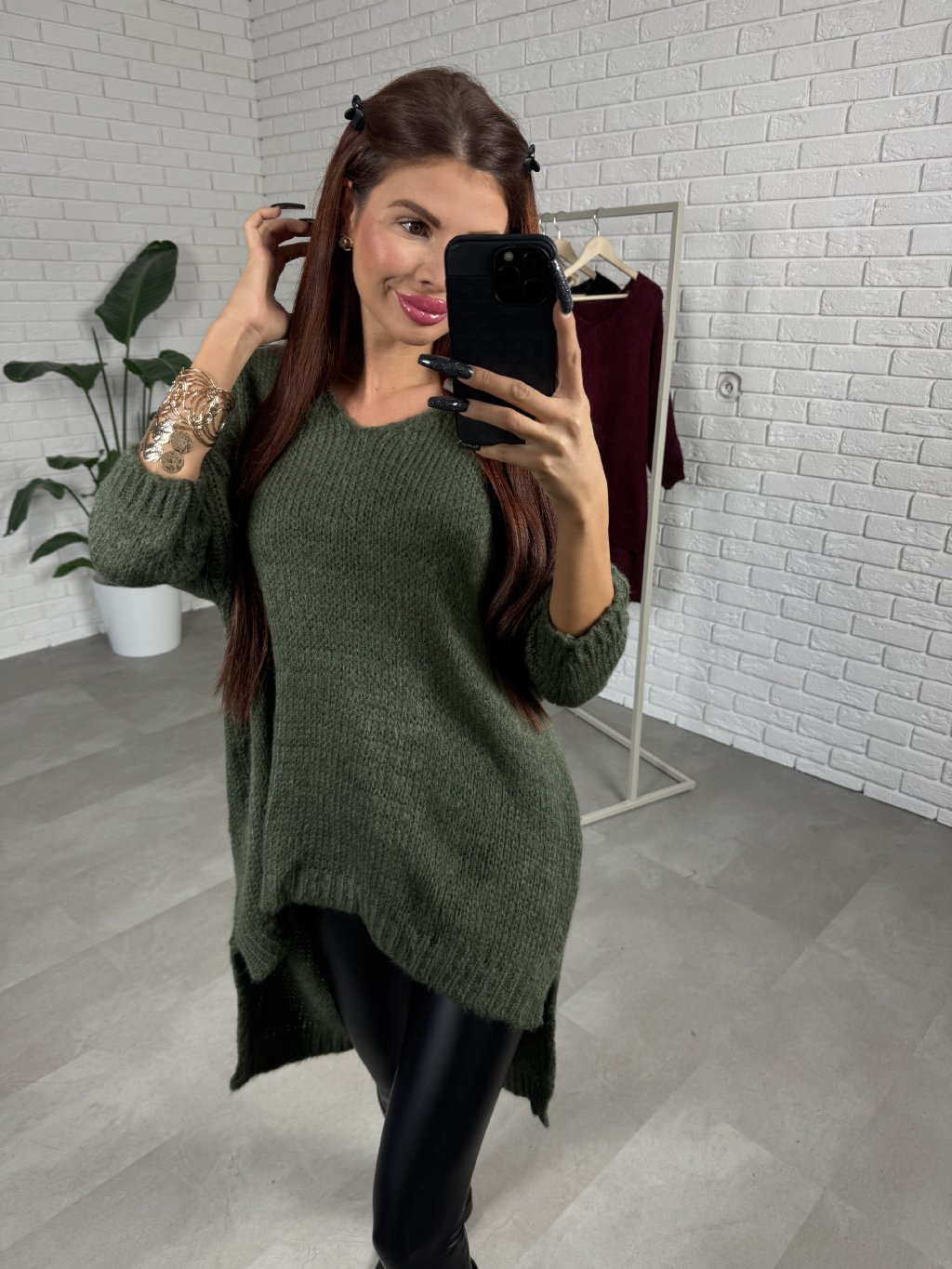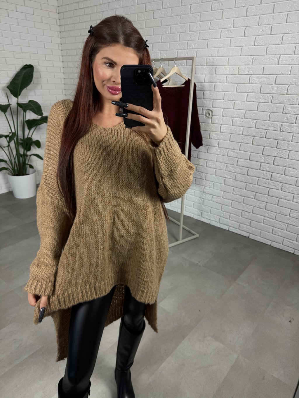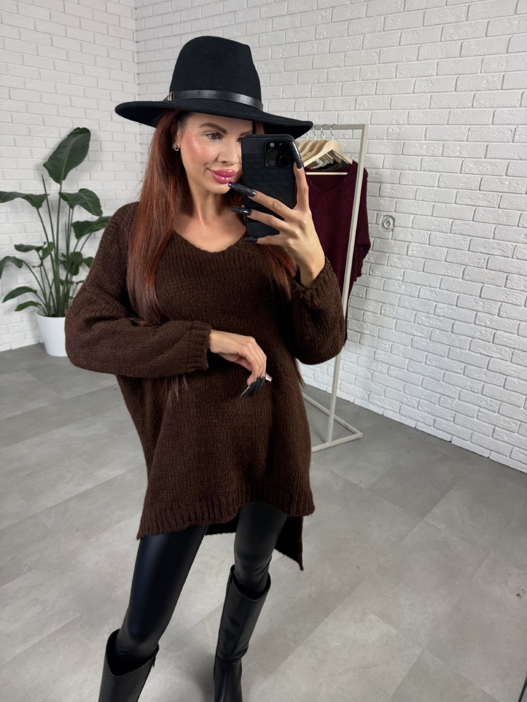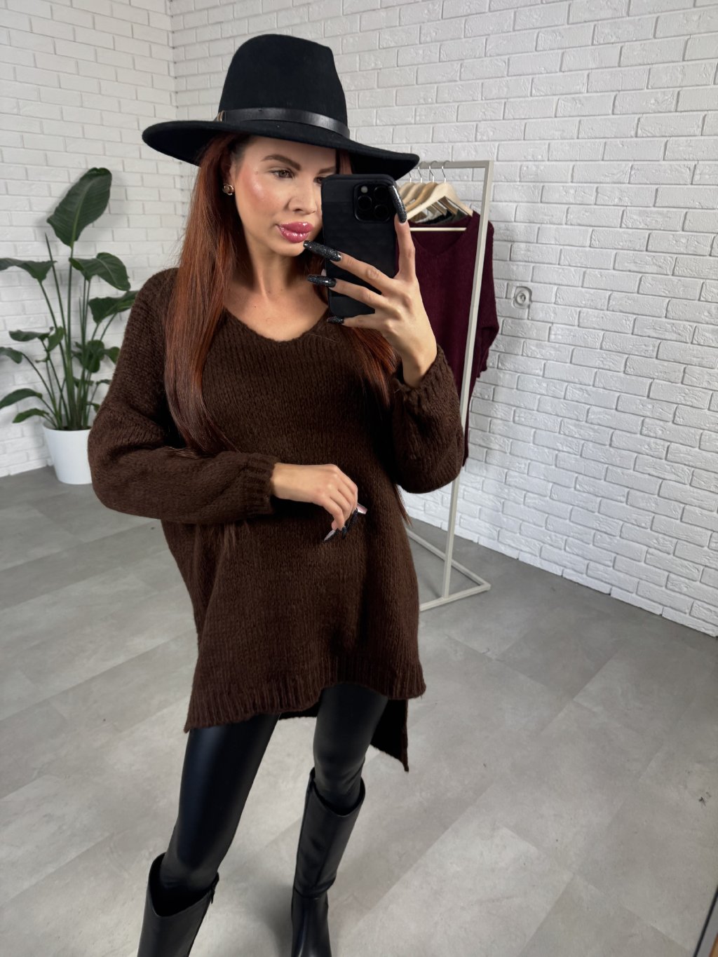 Svetr NEMUR ve volném střihu. Vzadu je prodloužen. Materiál je měkký a hřejivý. Svetřík má věčkový decentní výstřih. Je vhodný i pro vyšší postavy. Sedne od XS po XL. Jednoduchý kousek vhodný na podzim i na zimu. Zakryje všechny nedostatky.
