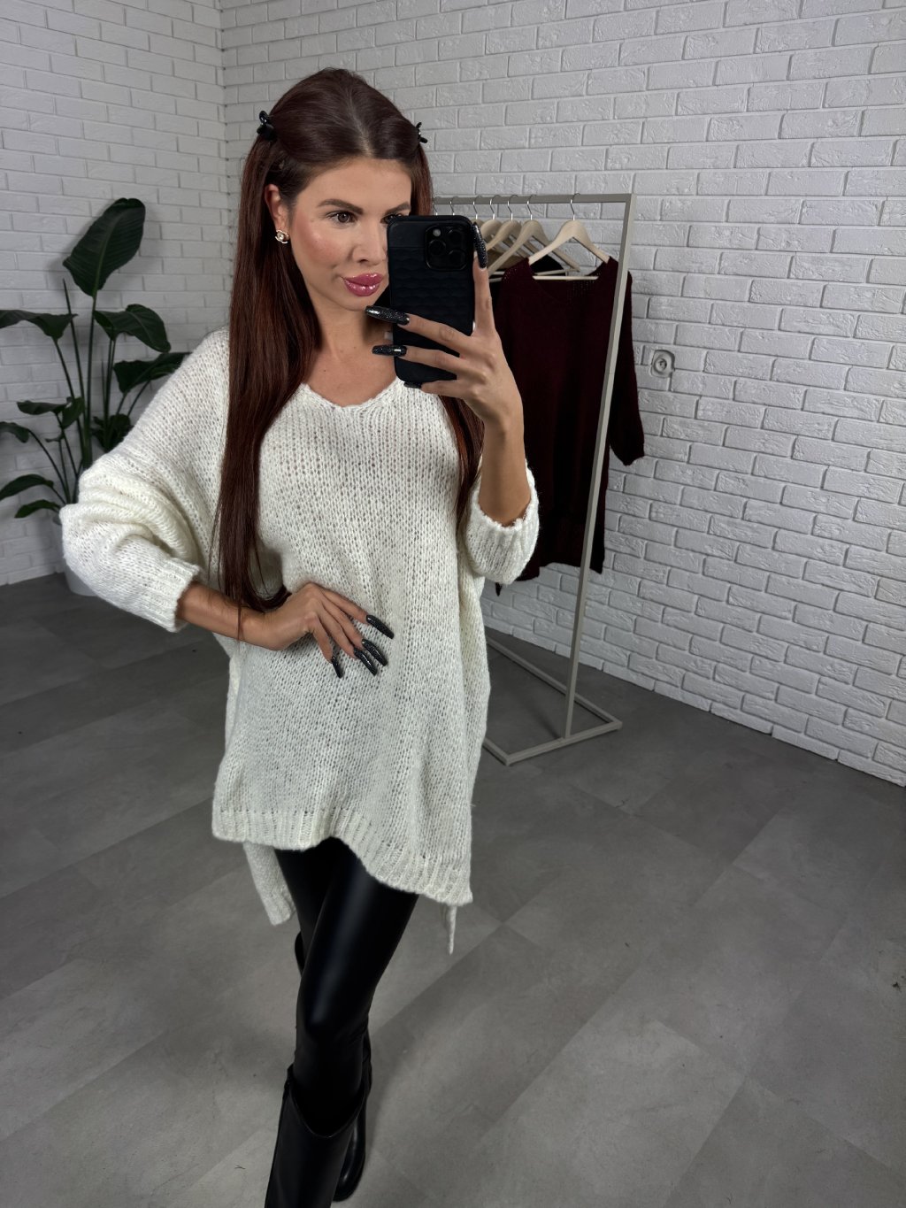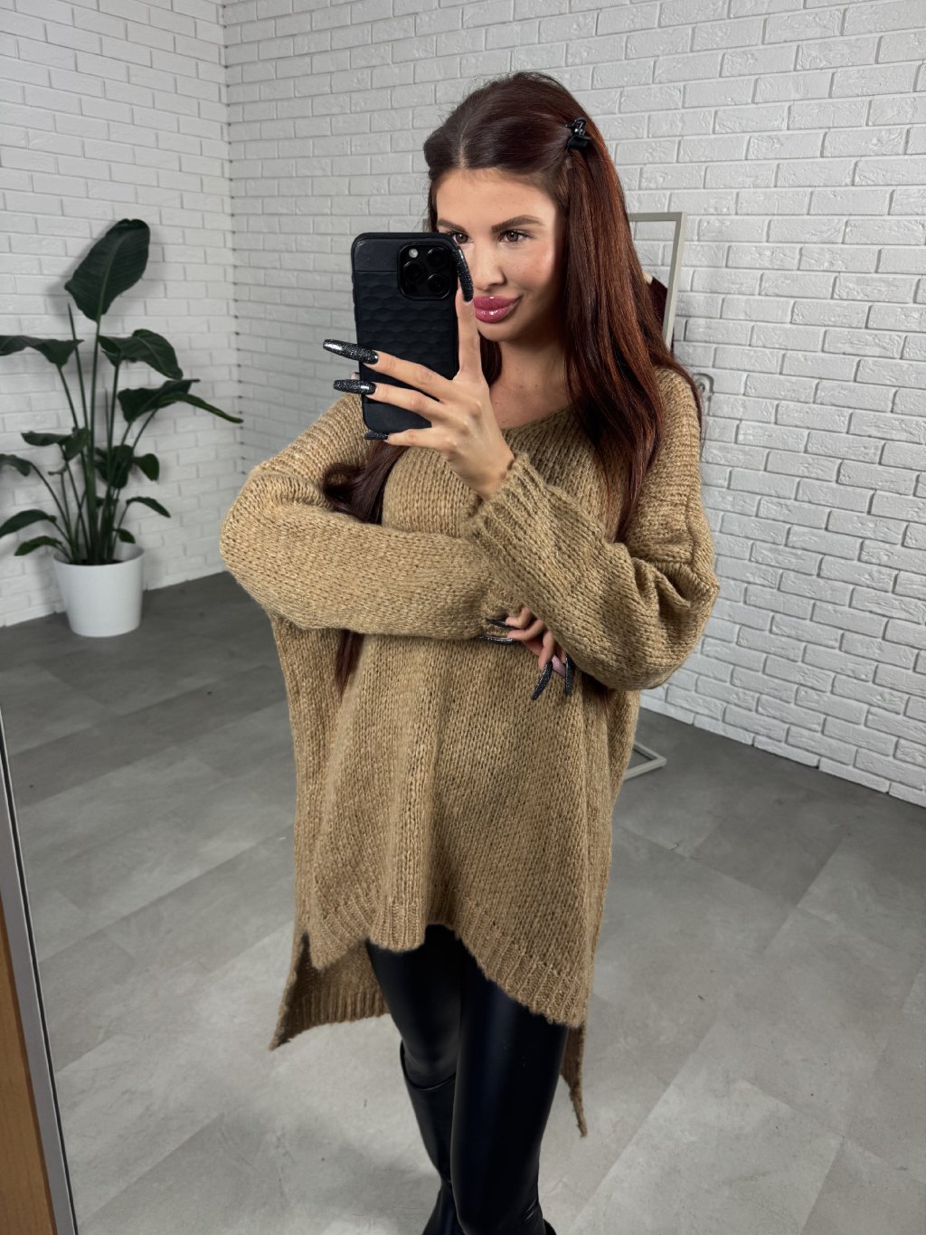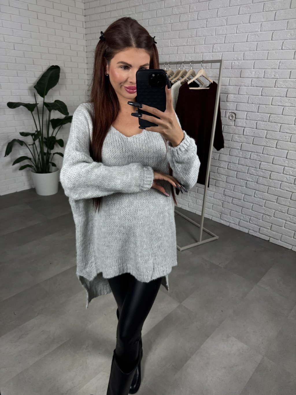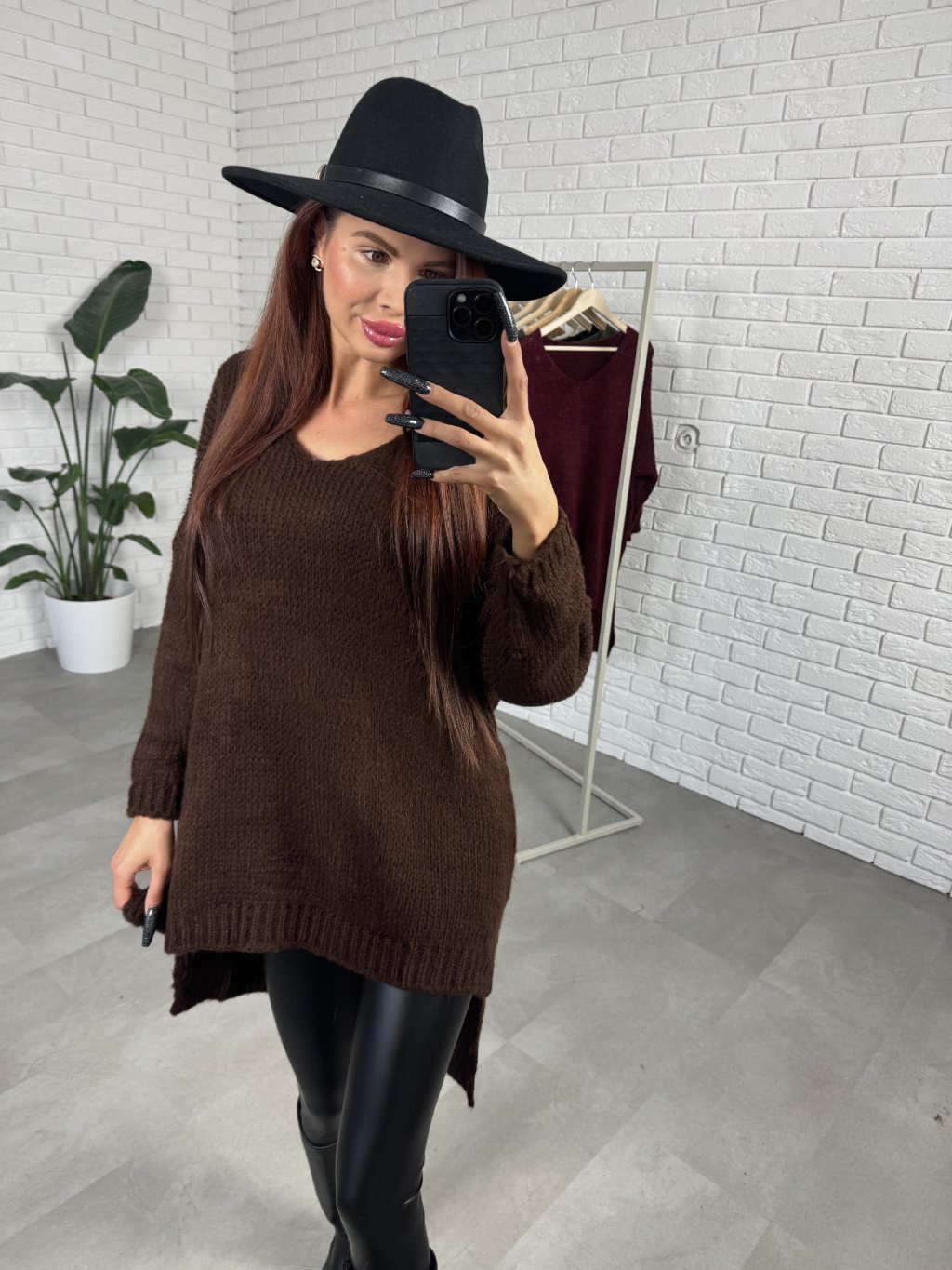 Svetr NEMUR ve volném střihu. Vzadu je prodloužen. Materiál je měkký a hřejivý. Svetřík má věčkový decentní výstřih. Je vhodný i pro vyšší postavy. Sedne od XS po XL. Jednoduchý kousek vhodný na podzim i na zimu. Zakryje všechny nedostatky.