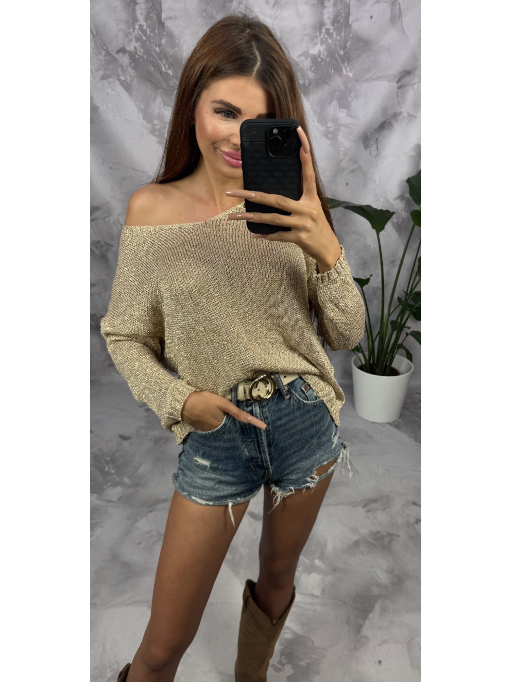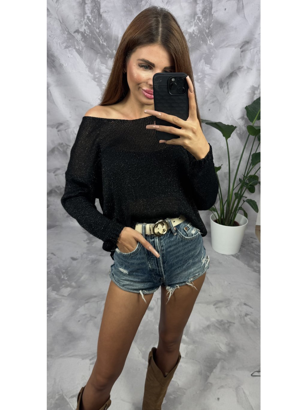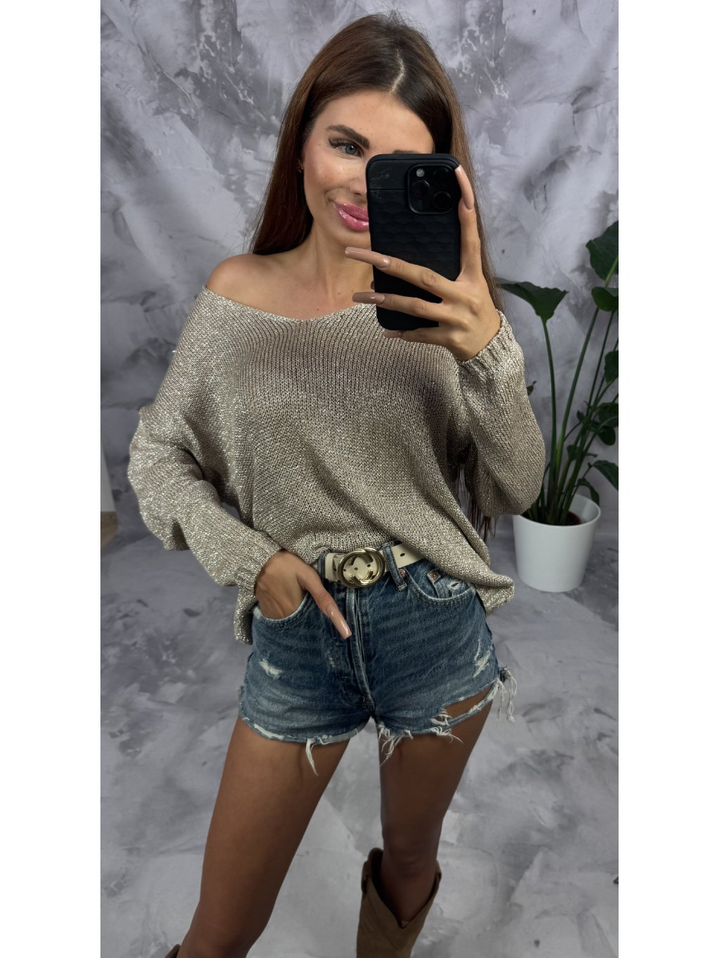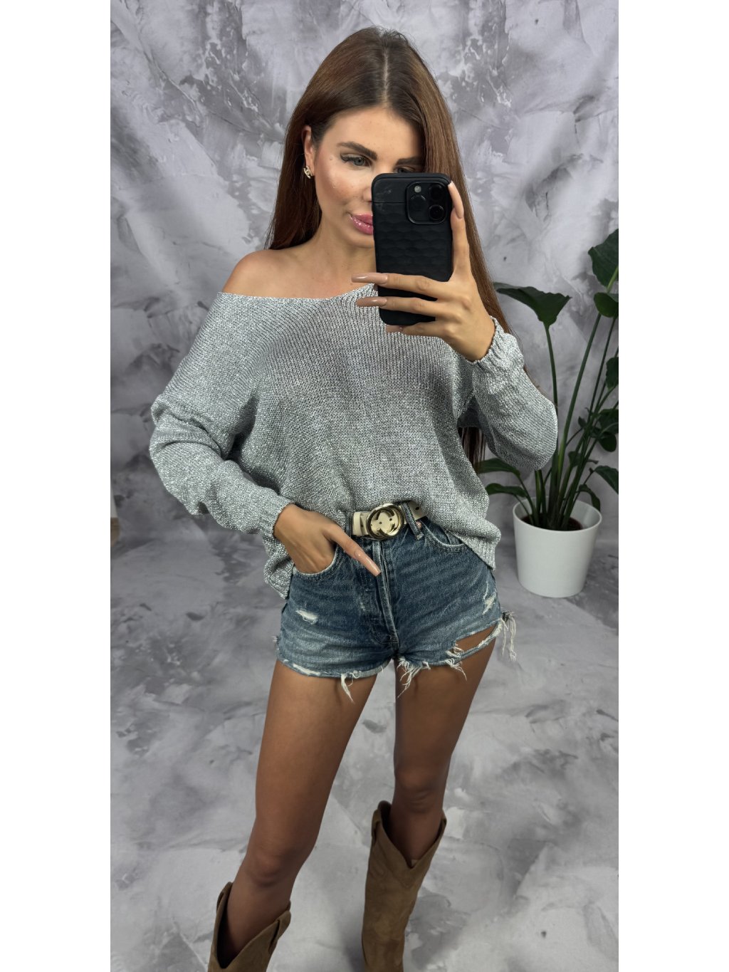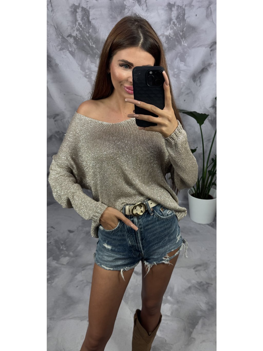 Svetr RUFUS v metalickém stylu. Krásný jednoduchý kousek, který neškrábe. Velmi univerzální kousek sedne od XS po XL. Střih je trošku prodloužen. Svetřík má dlouhý rukáv. Je vzdušný. Vhodný i pro nižší i vyšší baby. Svetřík se třpytí a má decentní výstřih. Dá se nosit i přes rameno.
