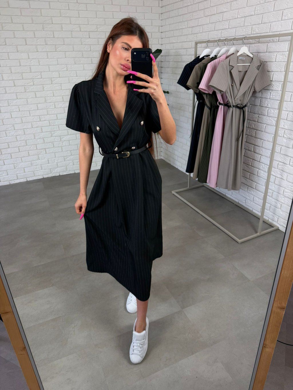 Rukávy jsou kratší a rozšířené, takže se pohodlně přizpůsobí každému obvodu ruky. Midi délka působí elegantně a je ideální pro vyšší kočky přibližně od 165 cm.
