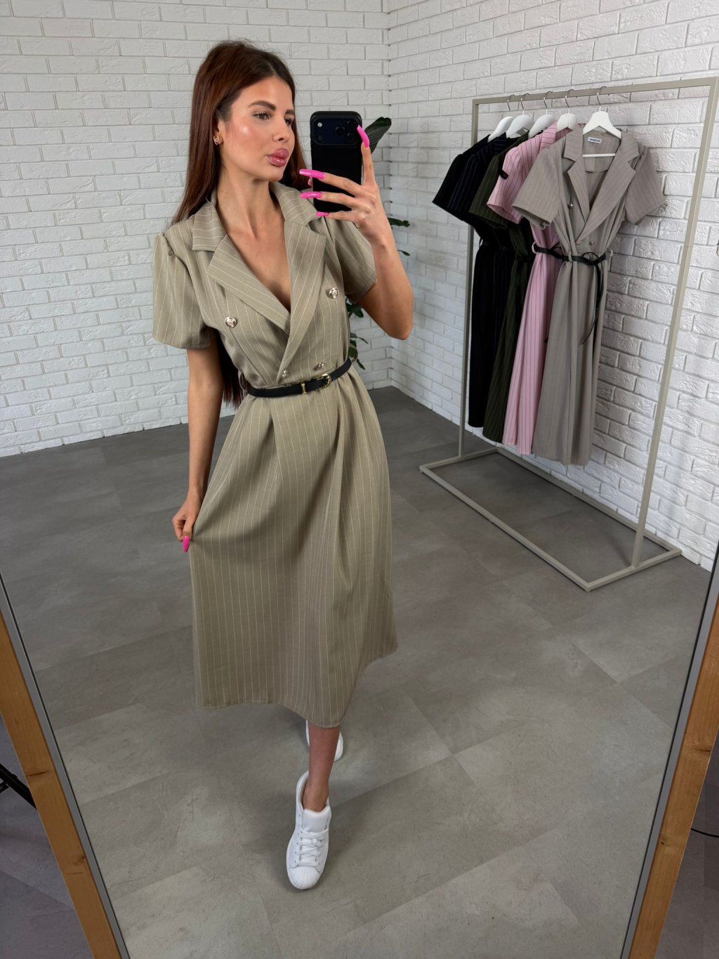 Střih je v oblasti bříška, pasu, boků i zadečku volnější a pod páskem se nachází ještě více prostoru, díky čemuž šaty pohodlně sednou i na těhotenské bříško. Opasek si umíš přizpůsobit podle sebe a zvýraznit pás přesně tak, jak potřebuješ.