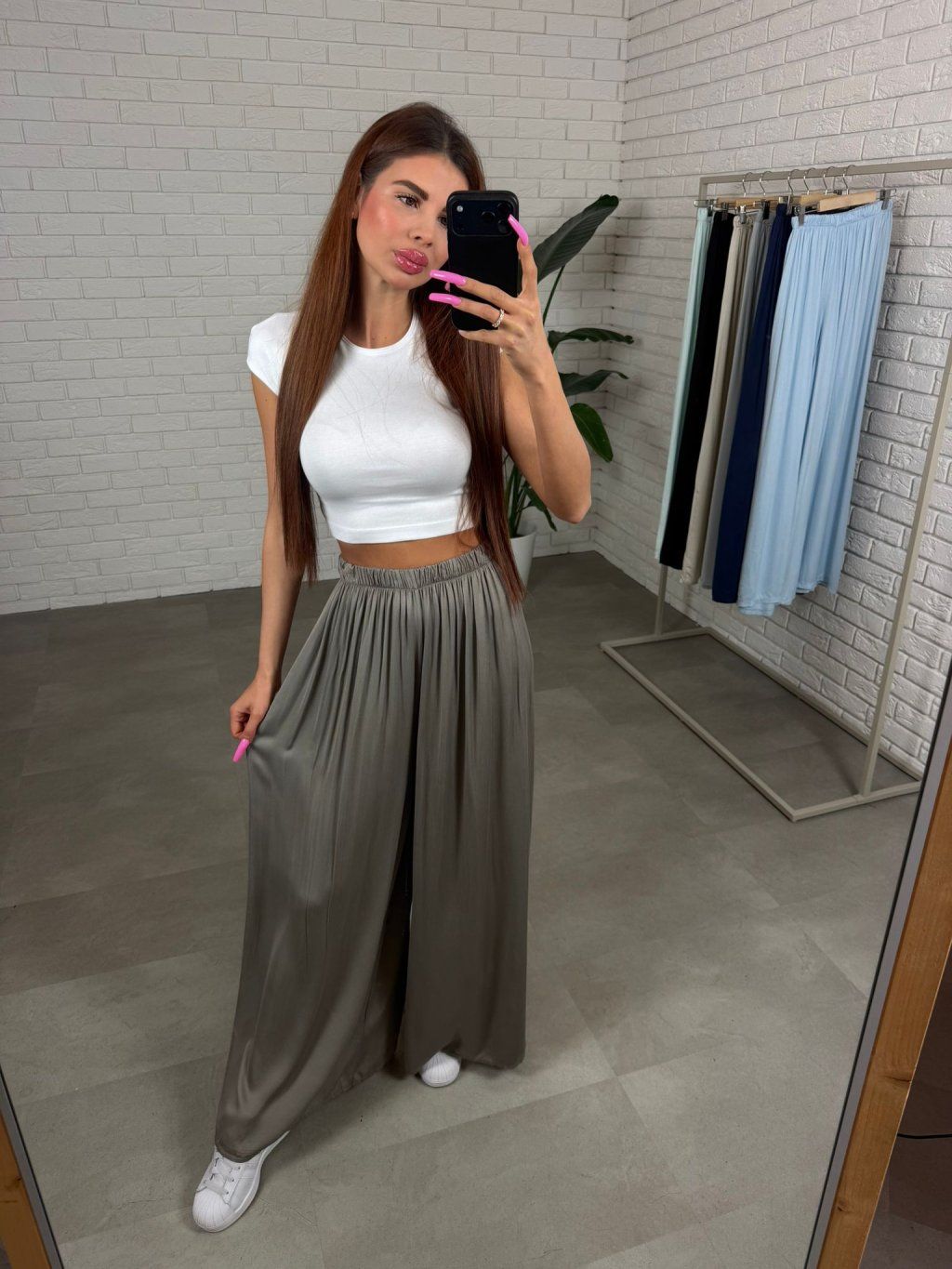 Nohavice NINA patria medzi naše bestsellery a nie je to náhoda. Sú ušité z ľahkého, vzdušného materiálu, ktorý je mimoriadne príjemný na dotyk a ideálny na teplejšie dni. Voľný padavý strih krásne splýva na postave a prirodzene zakryje oblasť bruška, bokov aj stehien, čím vytvára jemnú a lichotivú siluetu.