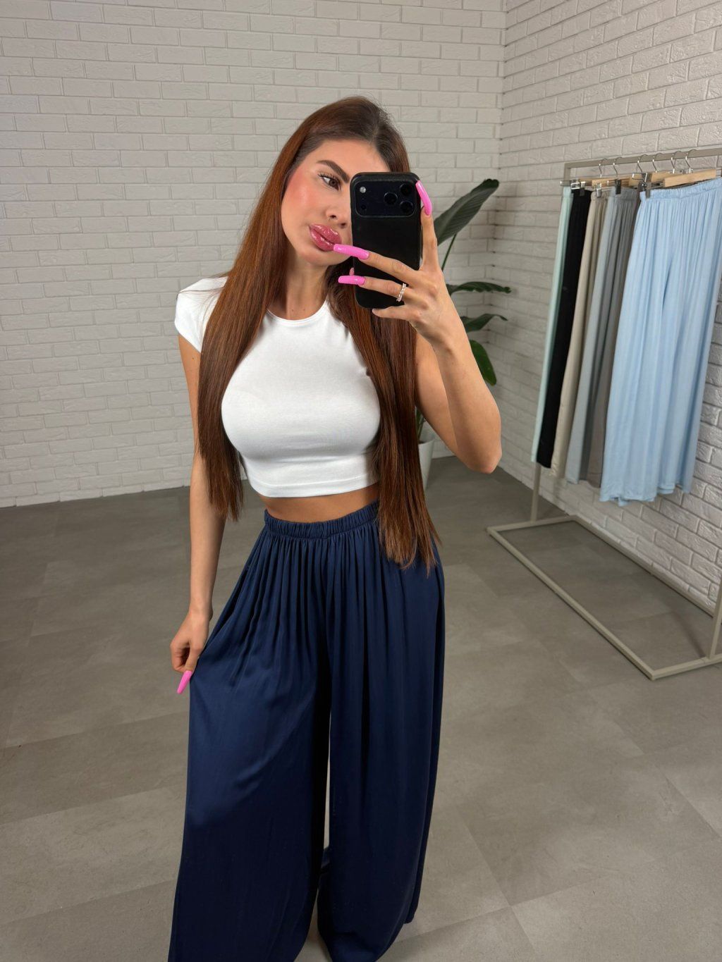 Nohavice NINA patria medzi naše bestsellery a nie je to náhoda. Sú ušité z ľahkého, vzdušného materiálu, ktorý je mimoriadne príjemný na dotyk a ideálny na teplejšie dni. Voľný padavý strih krásne splýva na postave a prirodzene zakryje oblasť bruška, bokov aj stehien, čím vytvára jemnú a lichotivú siluetu.