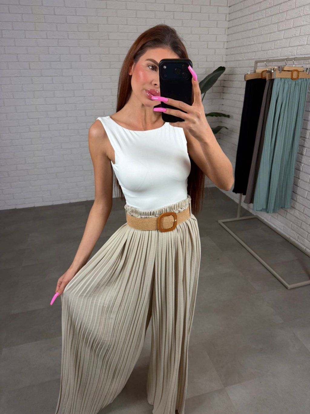 Materiál je příjemný, mírně těžší a hezky padavý, takže kalhoty přirozeně splývají na postavě a působí upraveně po celý den. Elastický pas se přizpůsobí každé postavě a poskytne komfort v oblasti bříška, pasu, boků i zadečku. Lanový pásek dotváří celkový vzhled a dodává kalhotám jemný stylový detail. Střih je navržen tak, aby sedl různým typům postavy a působil žensky a vyváženě. Kalhoty TARINA velikostně sednou od S až po XXL.